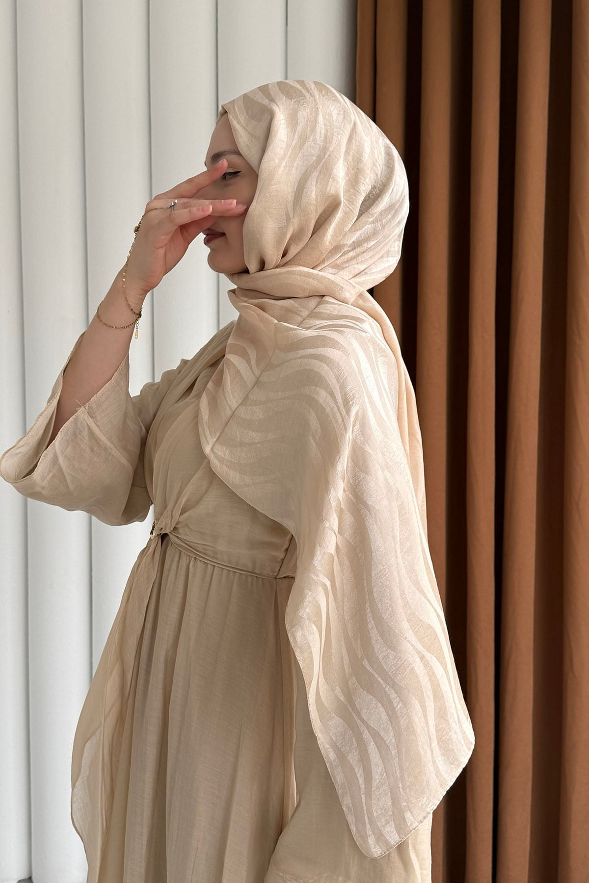 Airobin Zebra Desen Jakar Şal-BEJ (013)