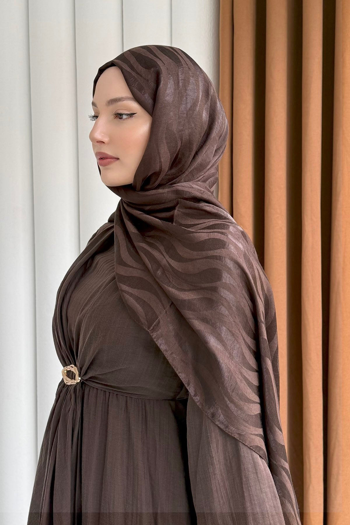 Airobin Zebra Desen Jakar Şal-KAHVERENGİ (013)
