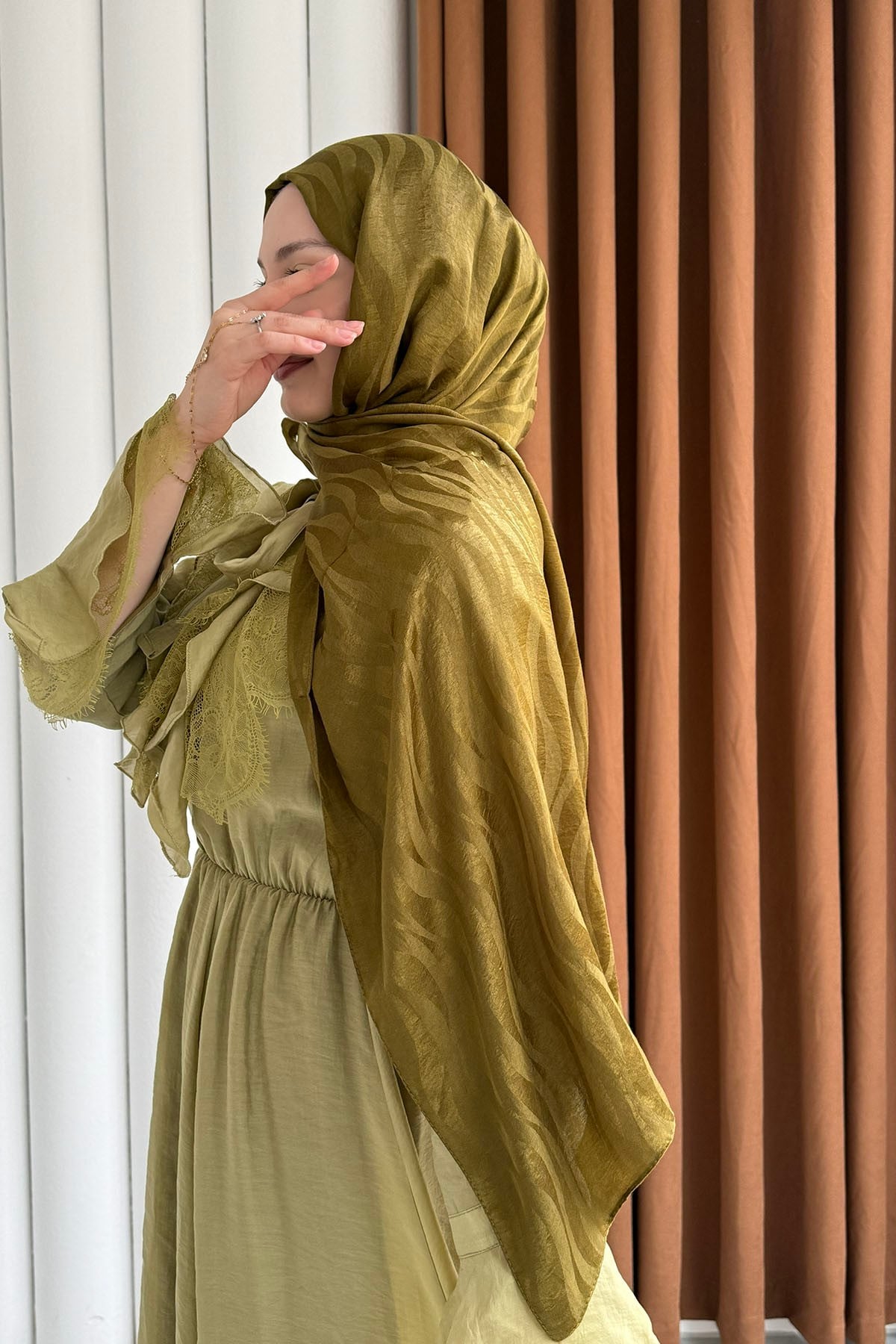 Airobin Zebra Desen Jakar Şal-YAĞ YEŞİLİ (013)
