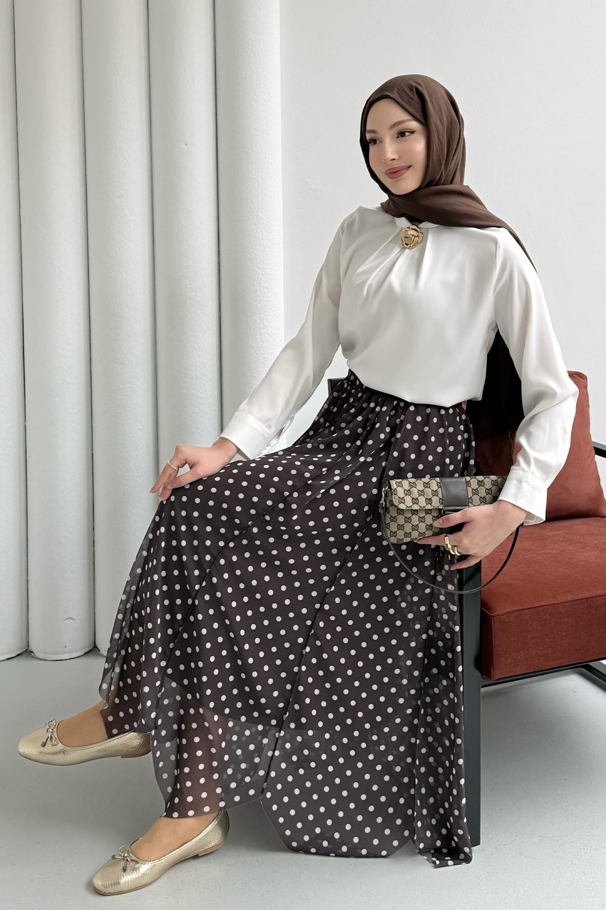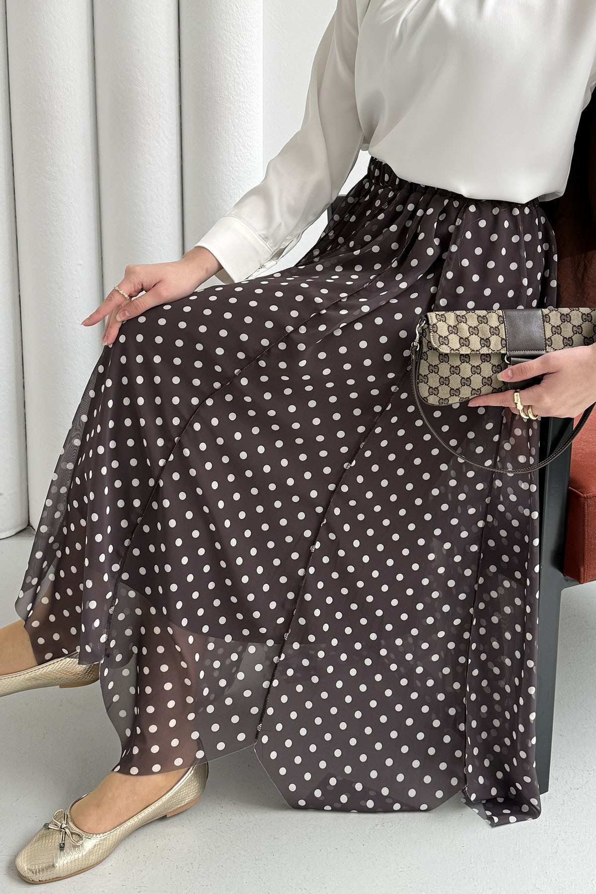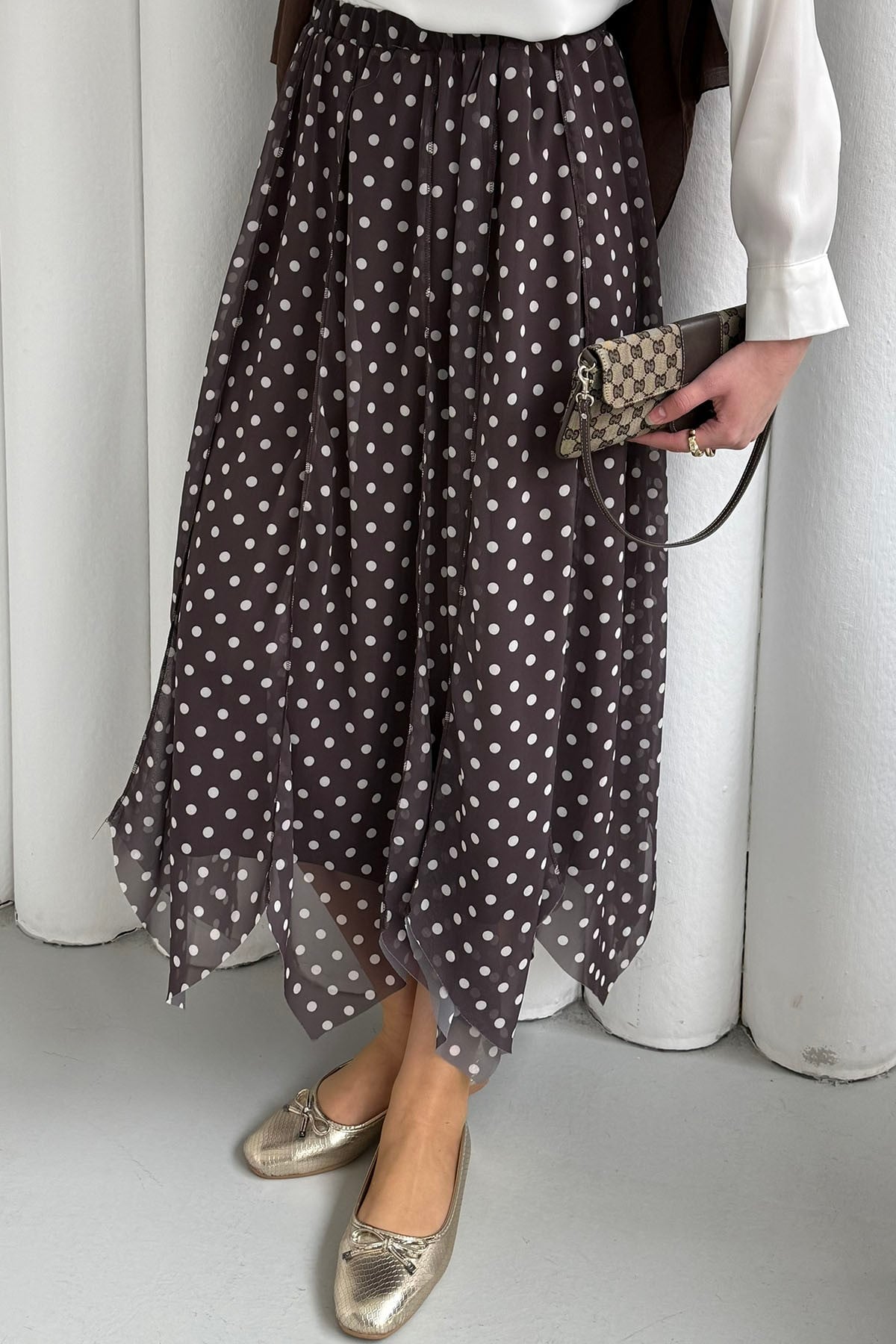 Asimetrik Kesim Puantiyeli Şifon Etek-KAHVERENGİ (5286)