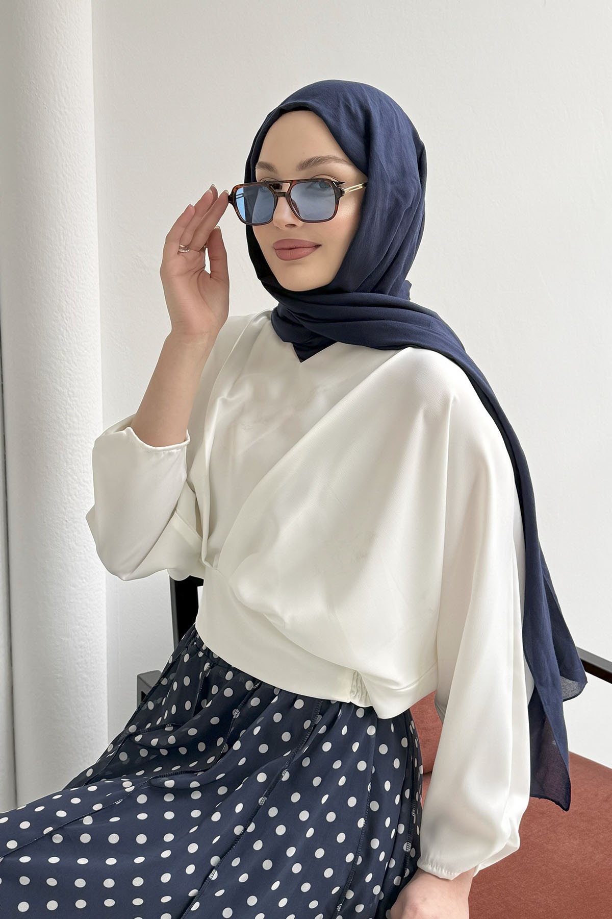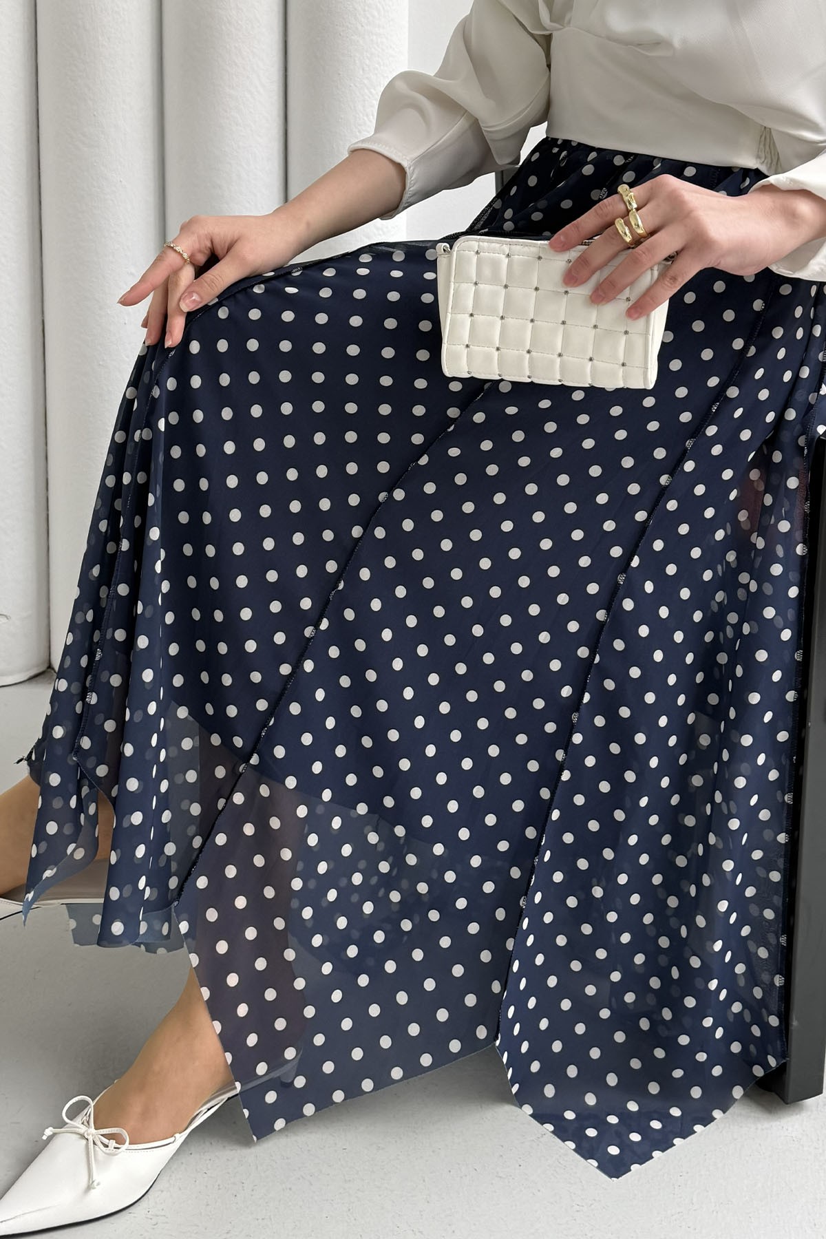Asimetrik Kesim Puantiyeli Şifon Etek-LACİVERT (5286)