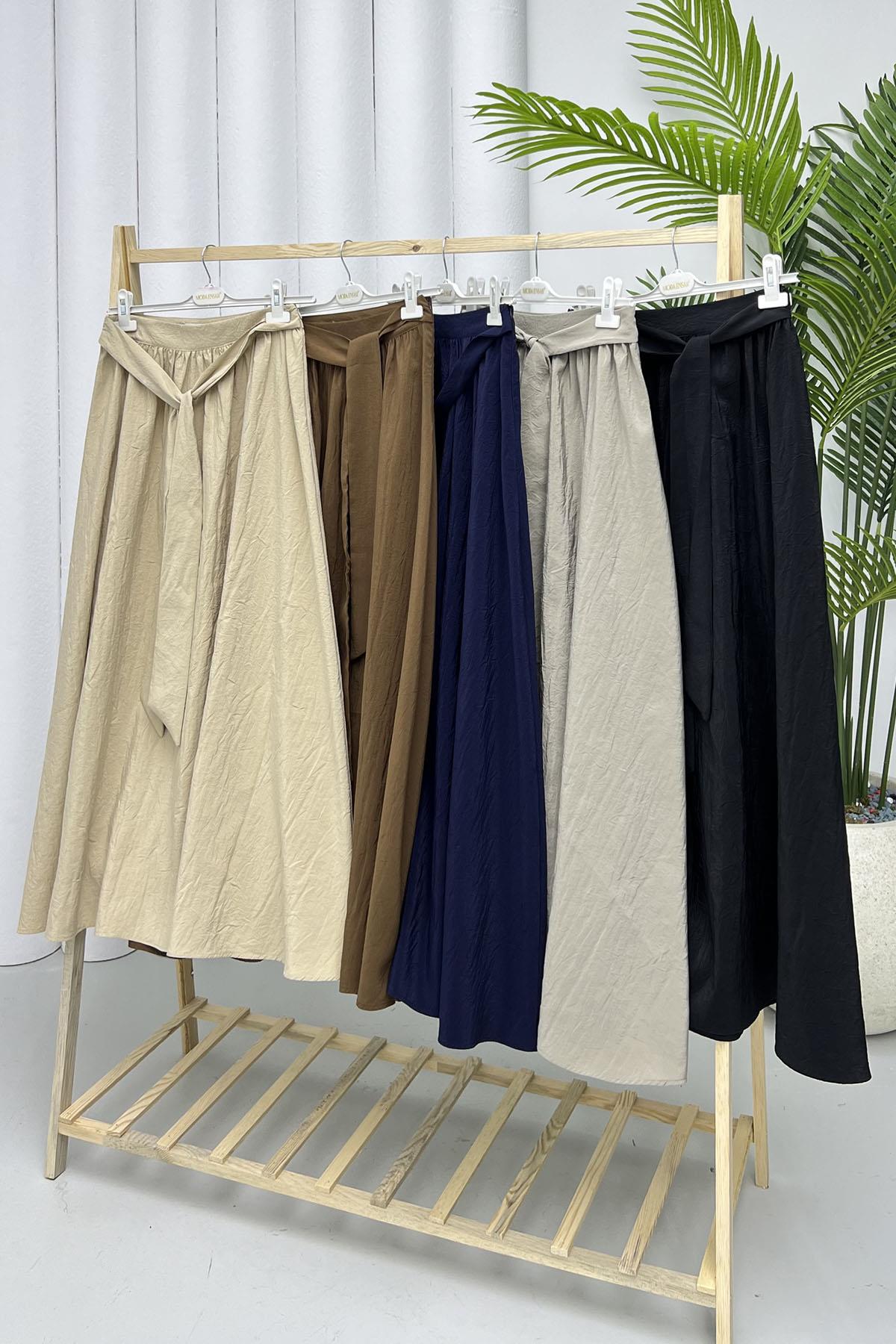 Bağlamalı Crash Etek-KAHVERENGİ Bağlamalı Crash Etek-TAŞ