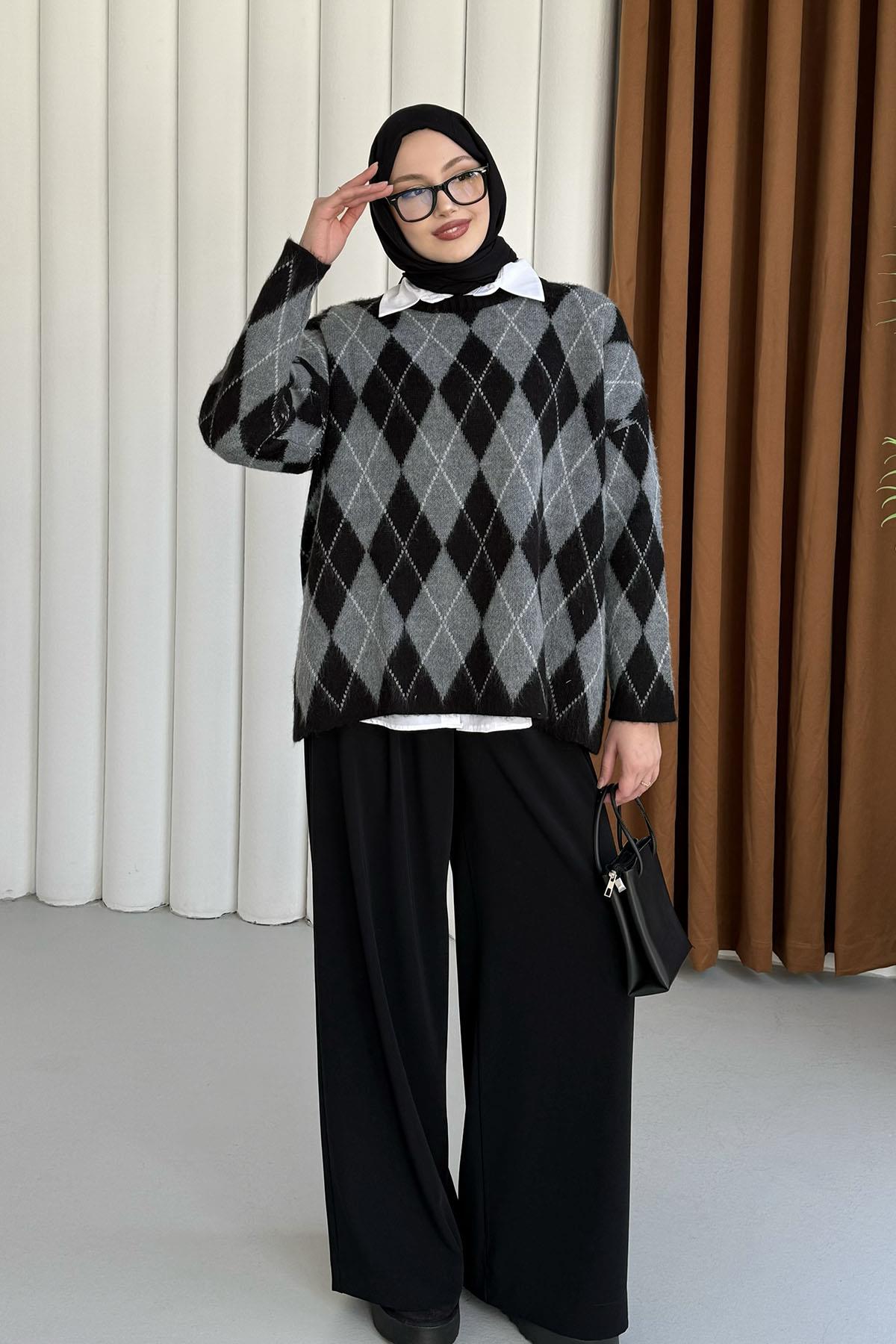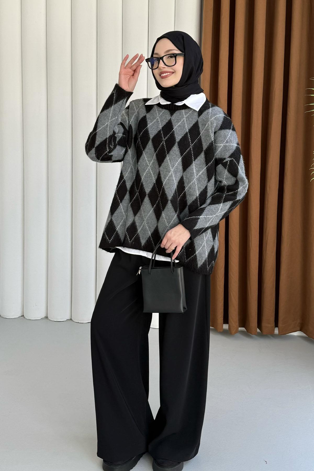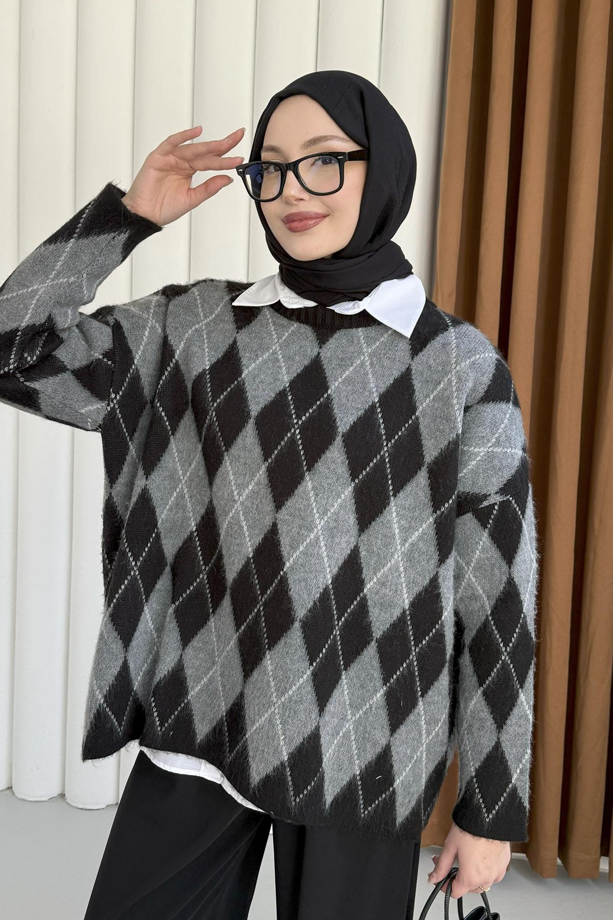 Baklava Desen Triko Kazak-SİYAH (5581)