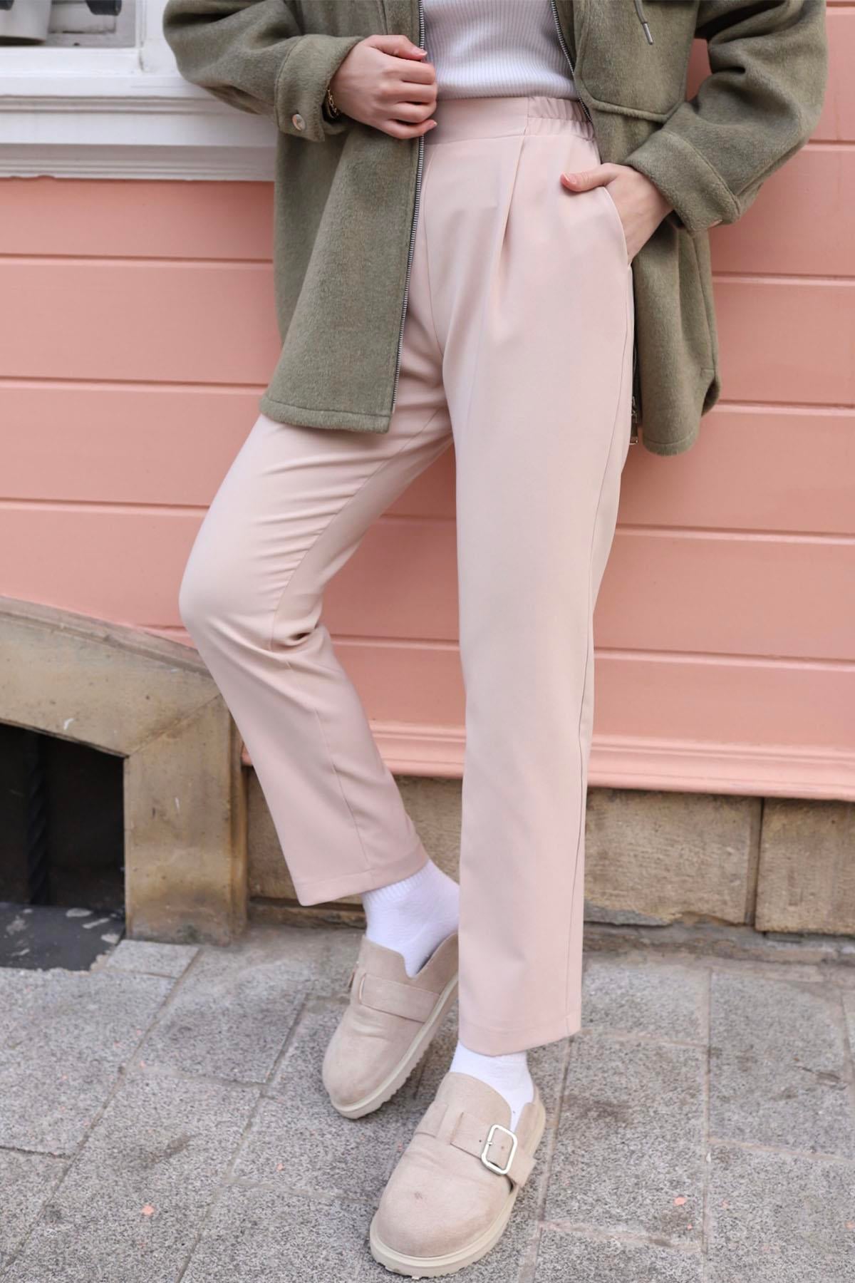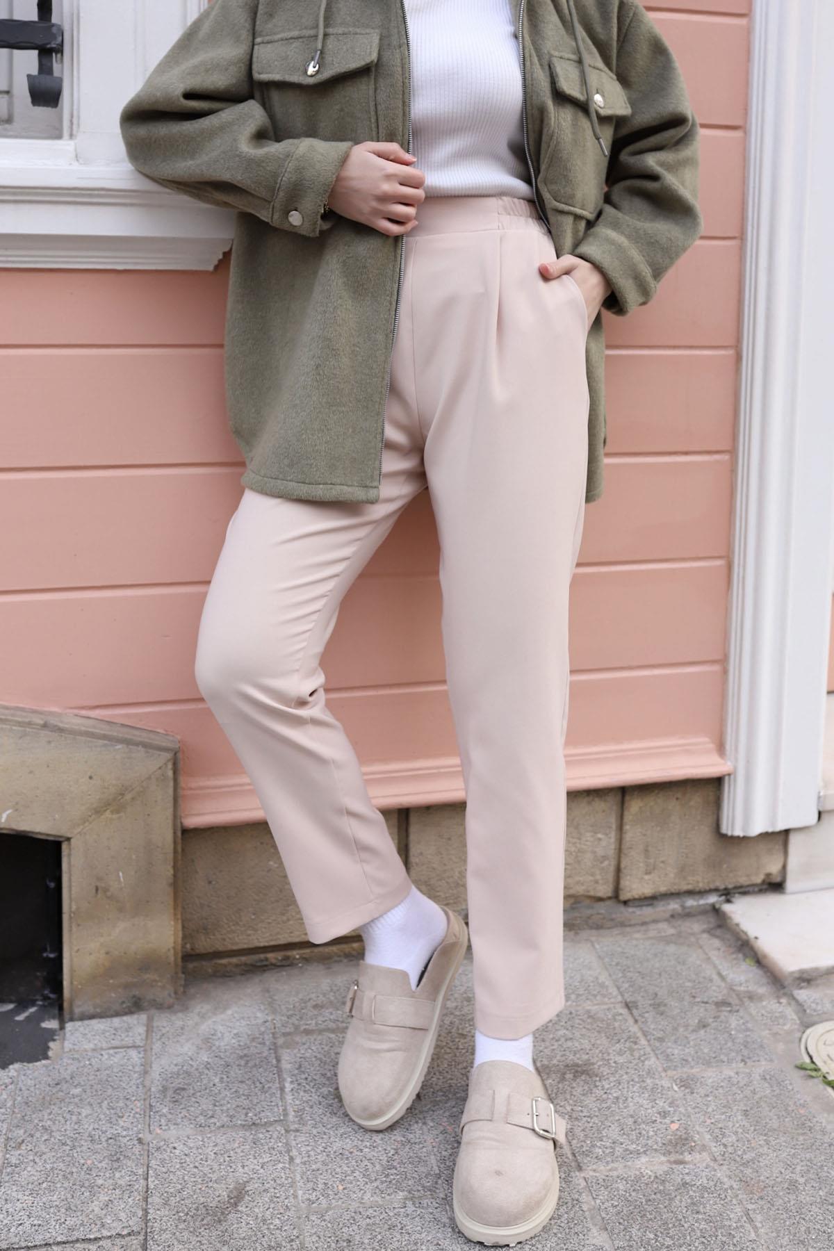 Bel Lastikli Ön Pile Detaylı Havuç Pantolon-TAŞ (803)