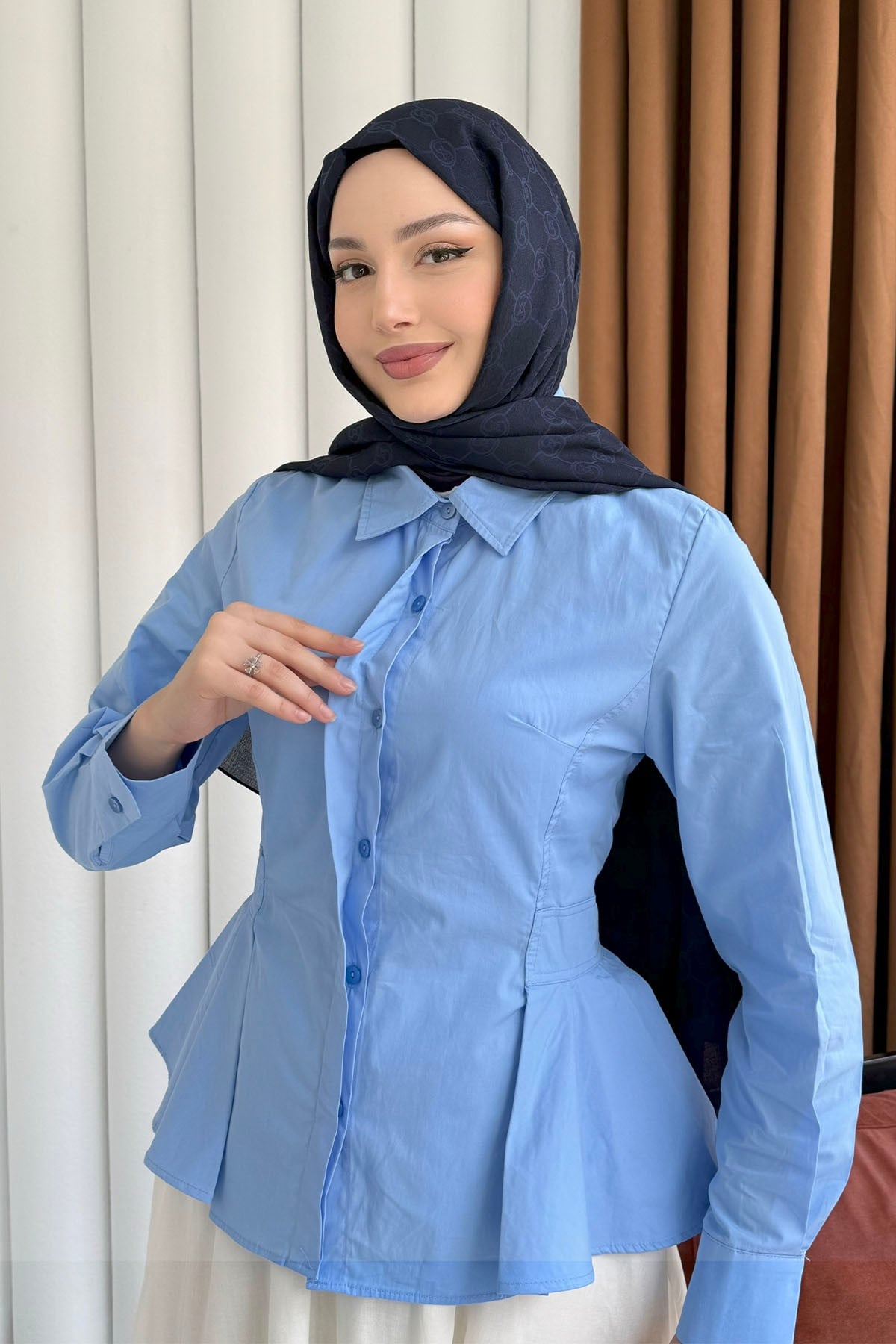 Belden Oturtmalı Düğmeli Gömlek-MAVİ Belden Oturtmalı Düğmeli Gömlek-SARI Belden Oturtmalı Düğmeli Gömlek-PEMBE Belden Oturtmalı Düğmeli Gömlek-BEYAZ