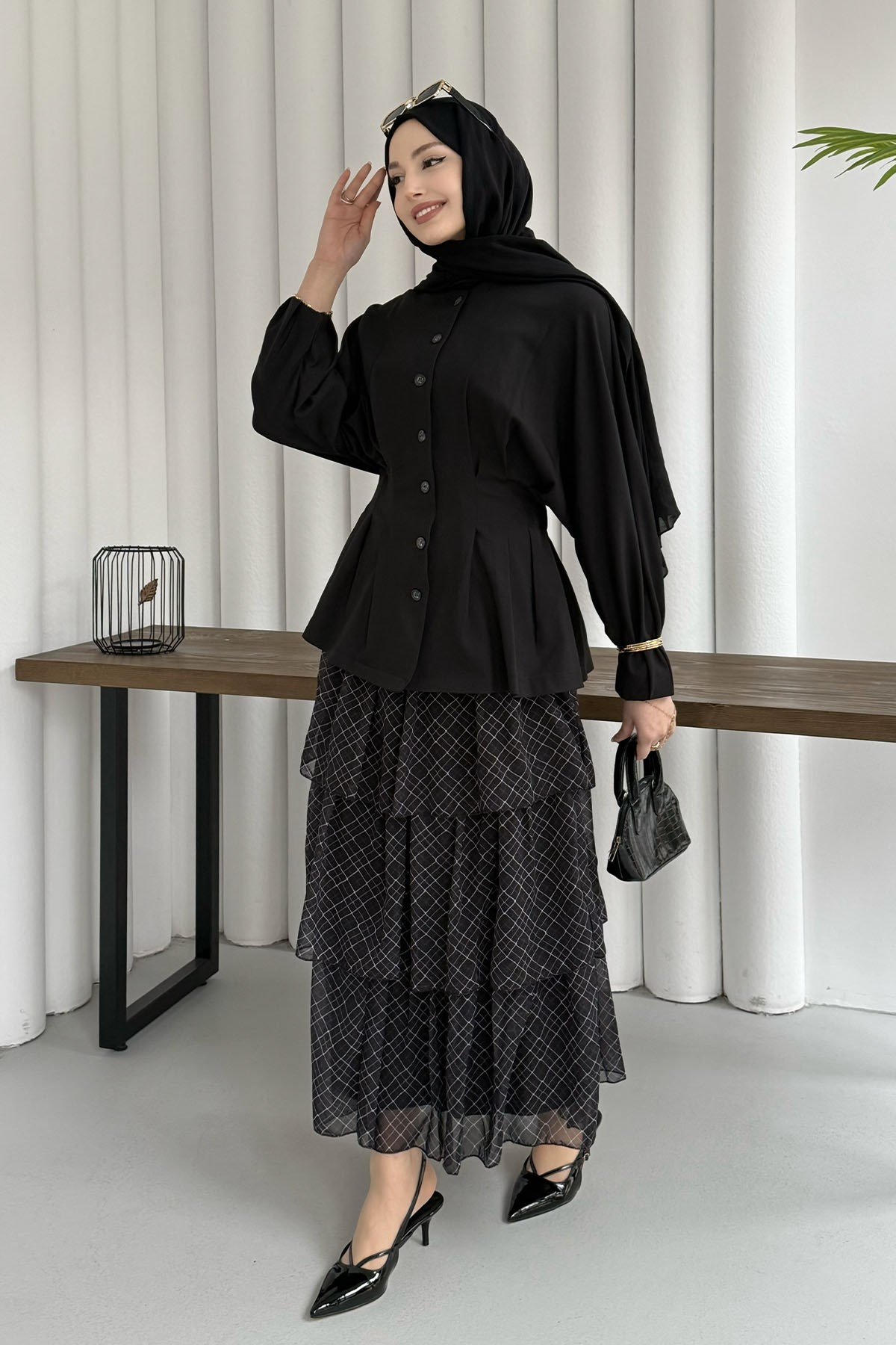 Beli Lastikli Kat Katlı Şifon Etek-KAHVERENGİ Beli Lastikli Kat Katlı Şifon Etek-BORDO Beli Lastikli Kat Katlı Şifon Etek-SİYAH