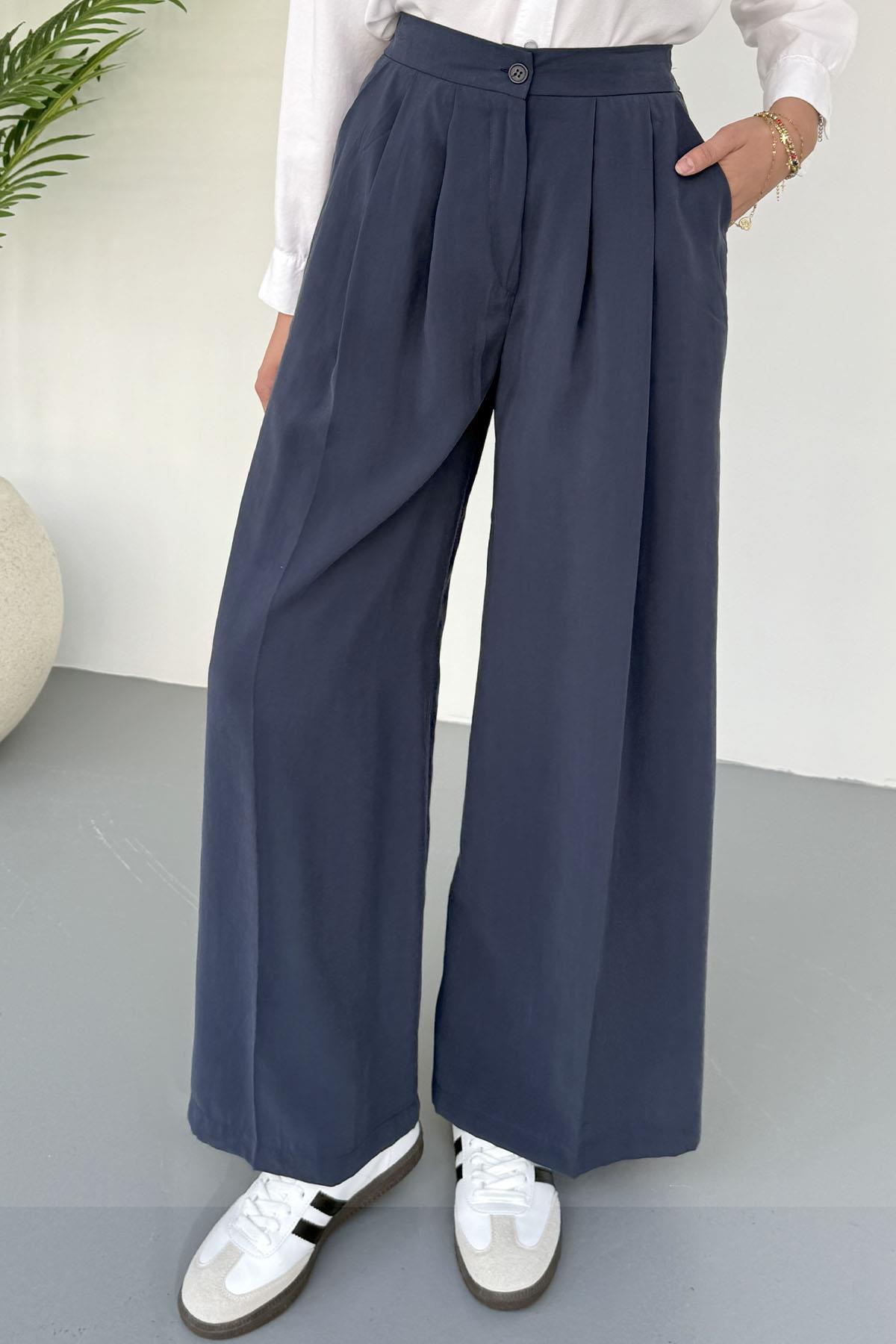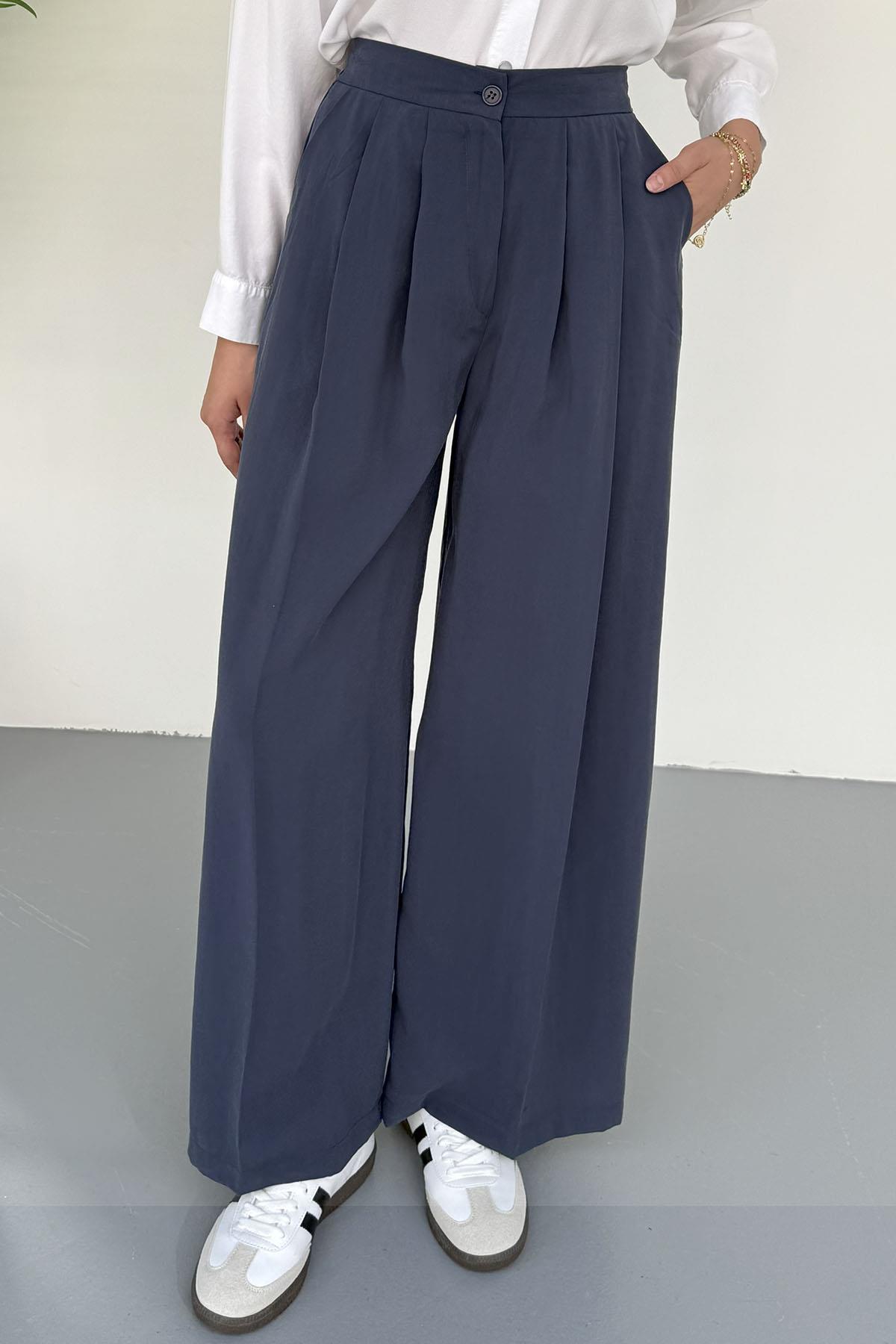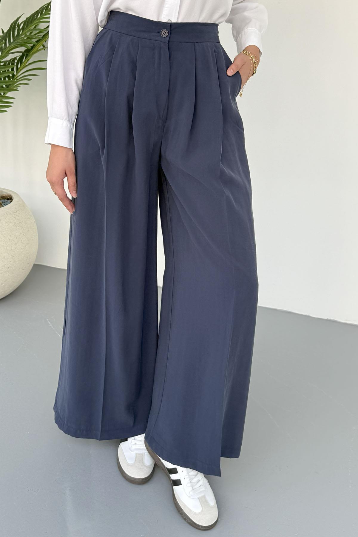 Beli Lastikli Modal Kumaş Pantolon-LACİVERT (8039)