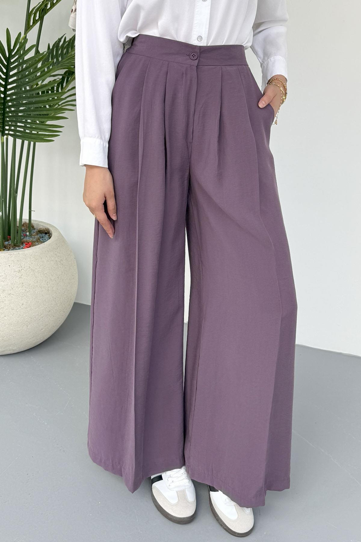 Beli Lastikli Modal Kumaş Pantolon-MÜRDÜM (8039)
