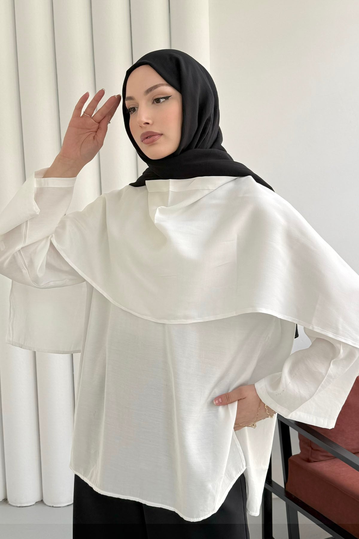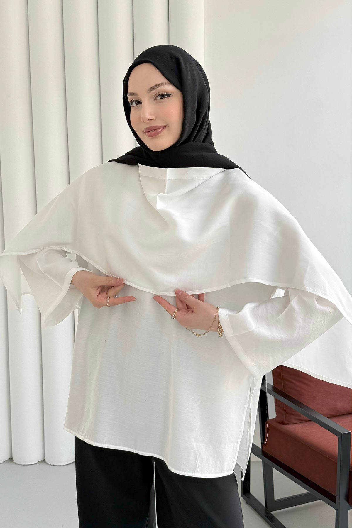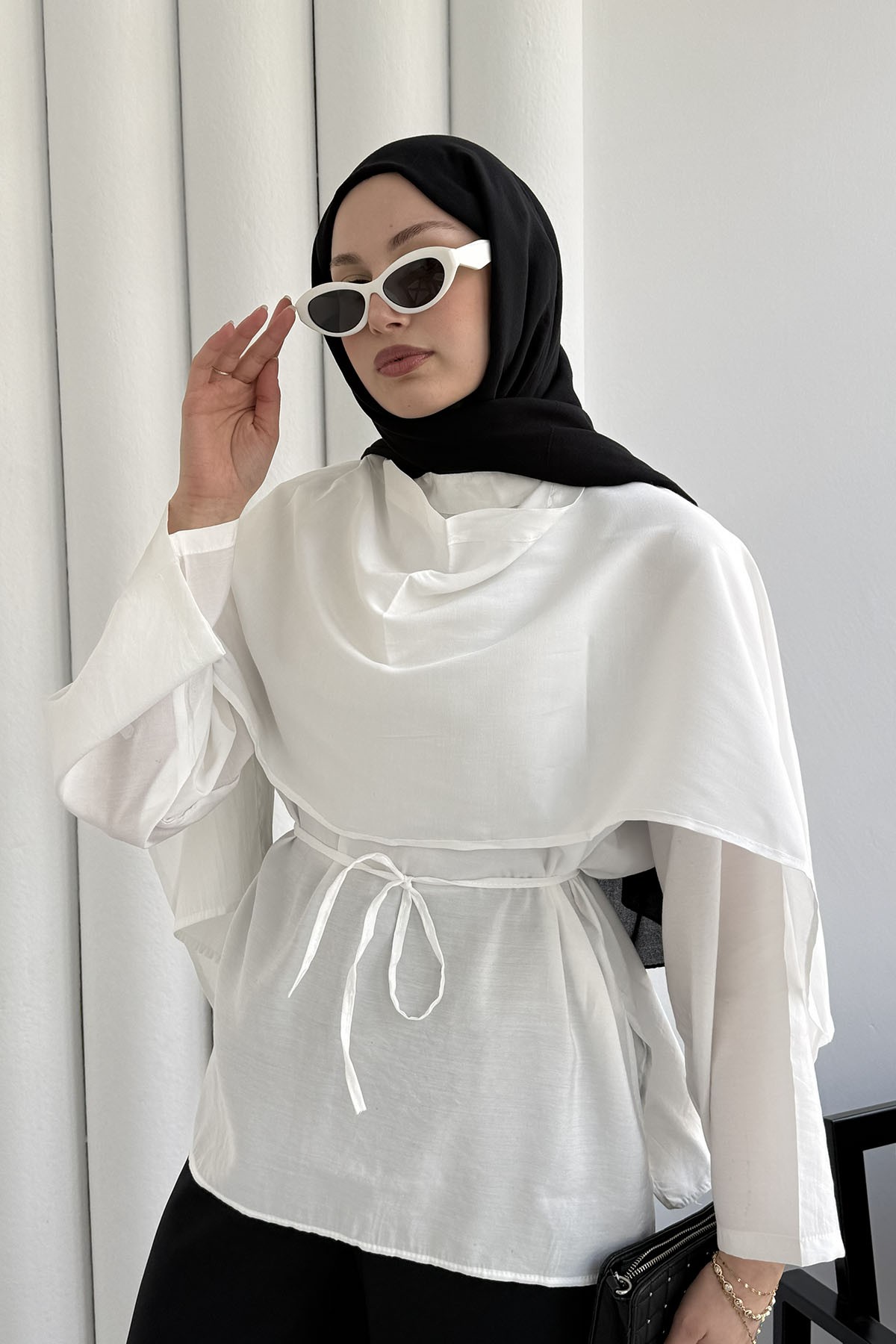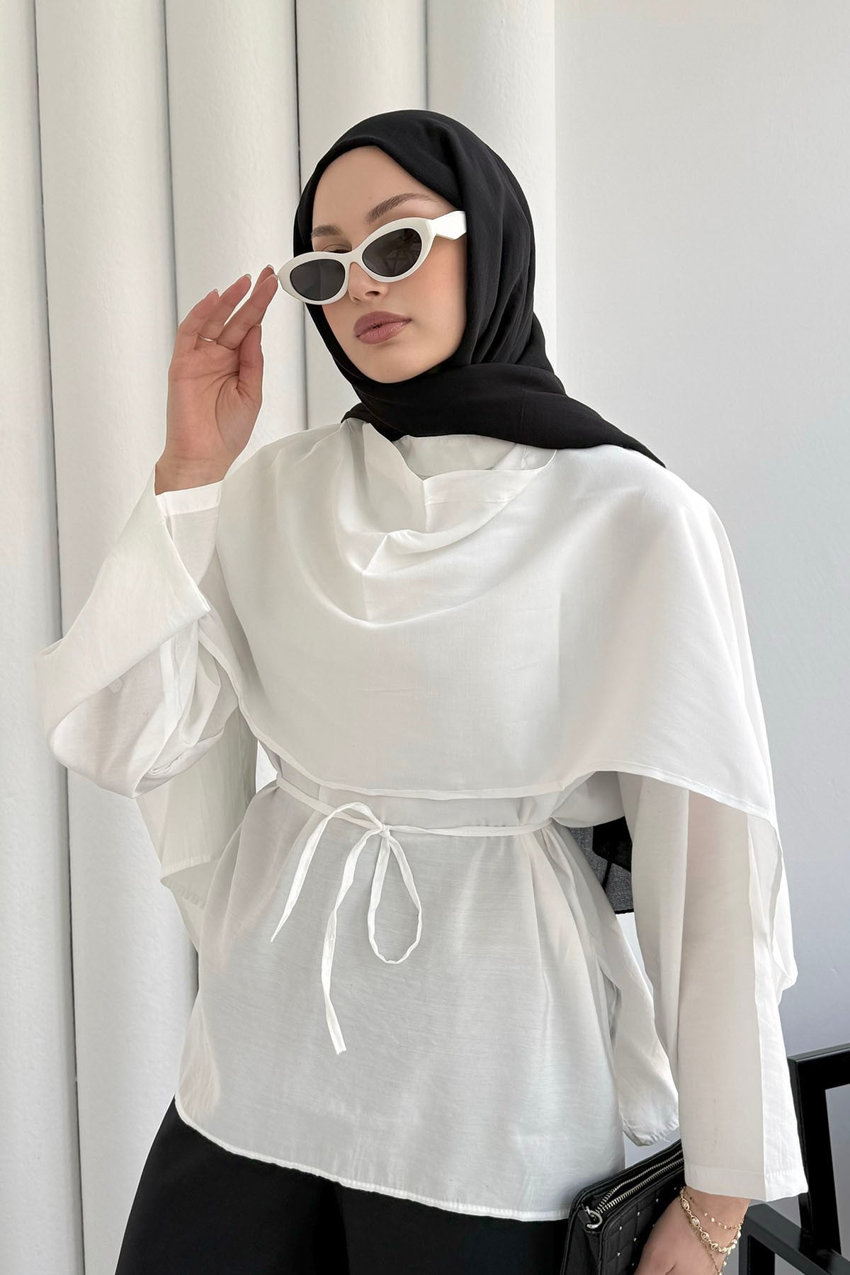 Biyeli Kemer ve Şal Detaylı Tunik-BEYAZ (61406)