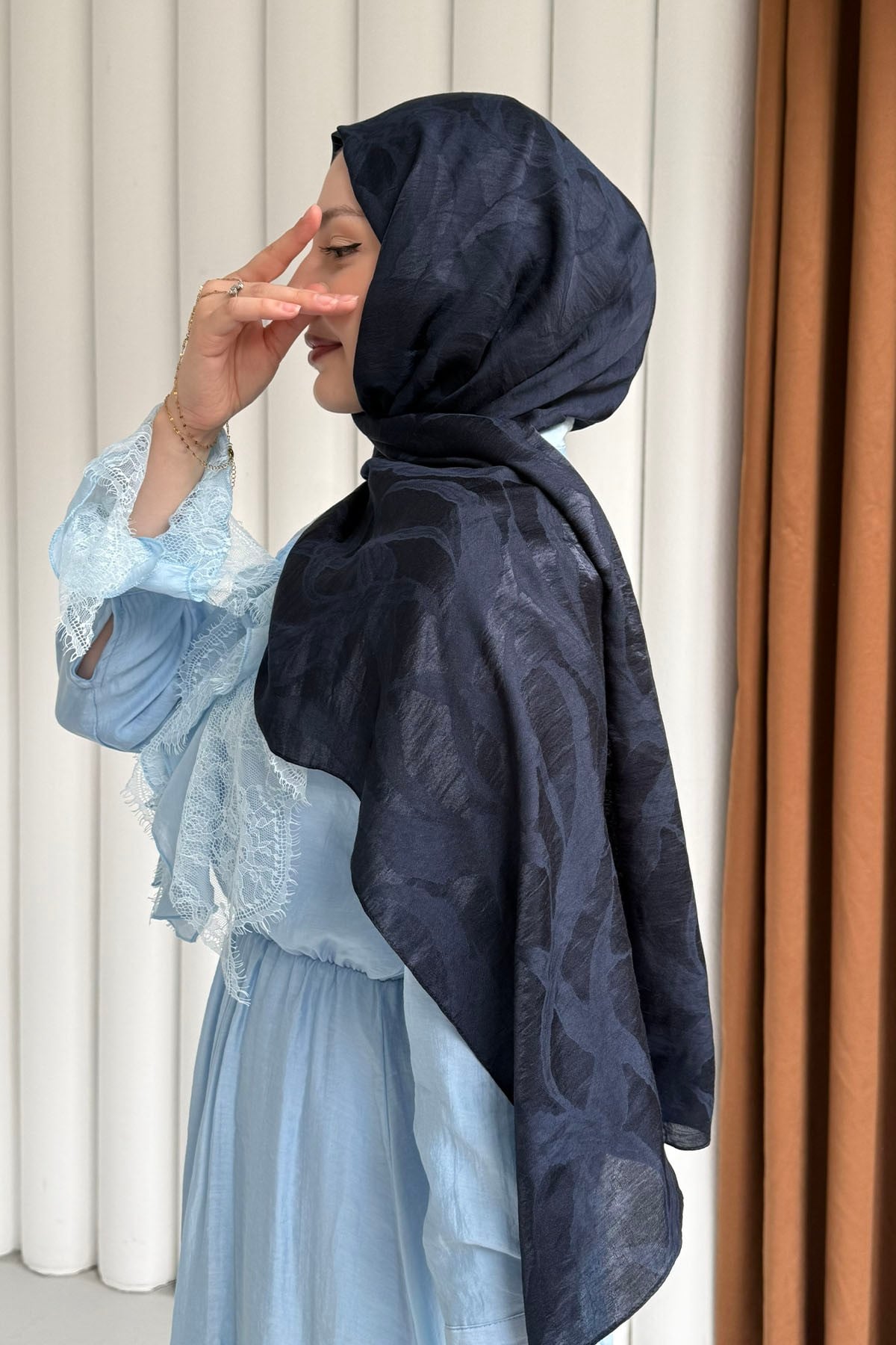 Dalga Desen Pamuklu Ayrobin Jakar Şal-LACİVERT (014)