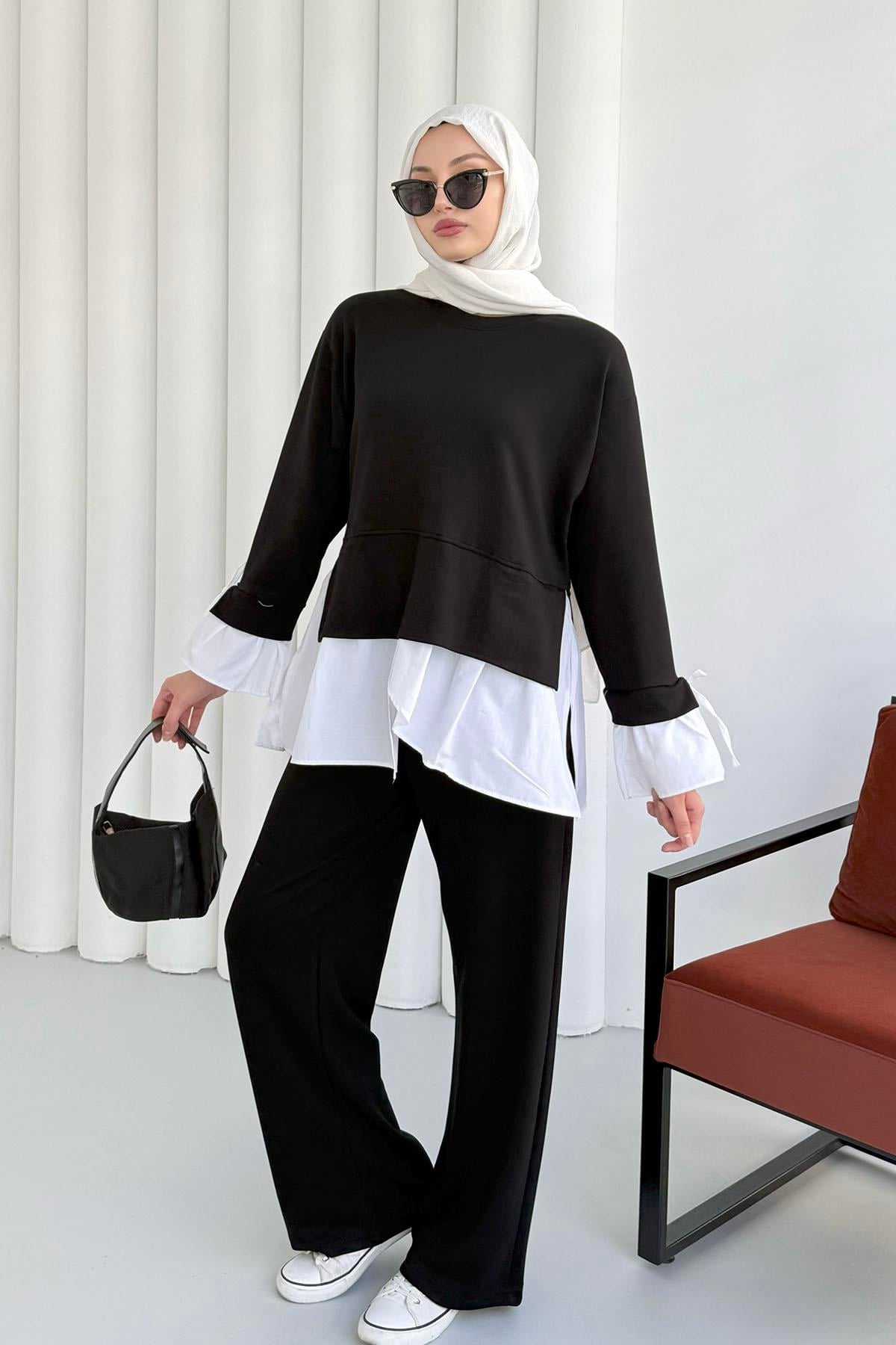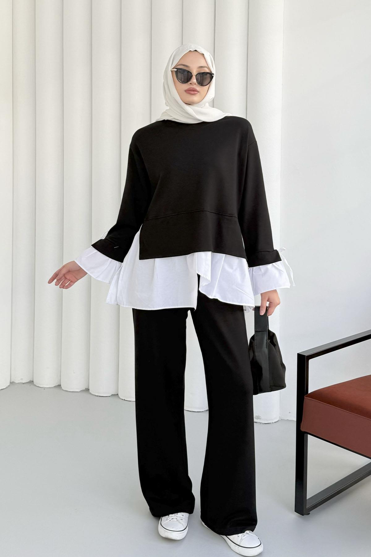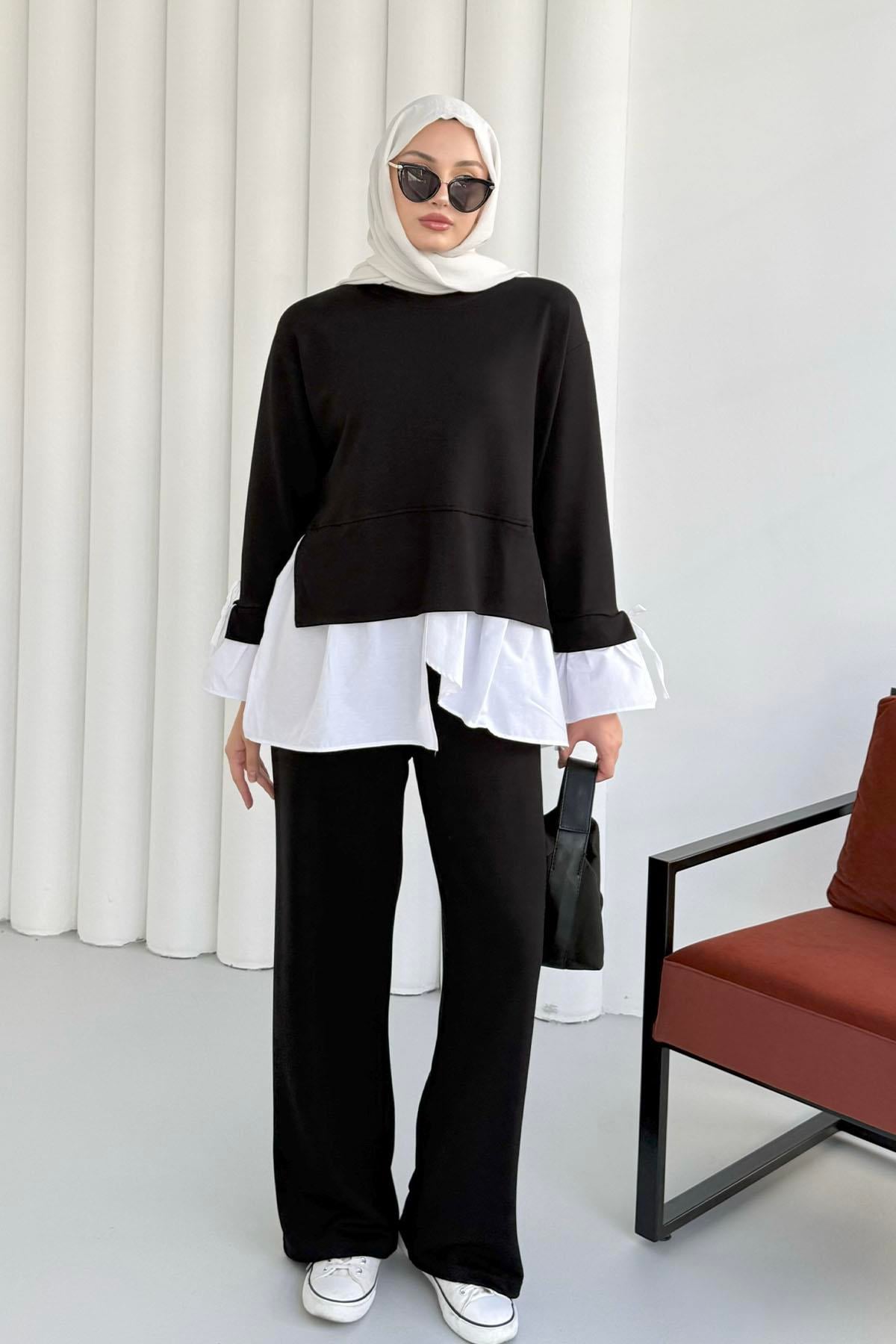 Gömlek Detaylı Pantolonlu Tesettür Takım-SİYAH (3020)