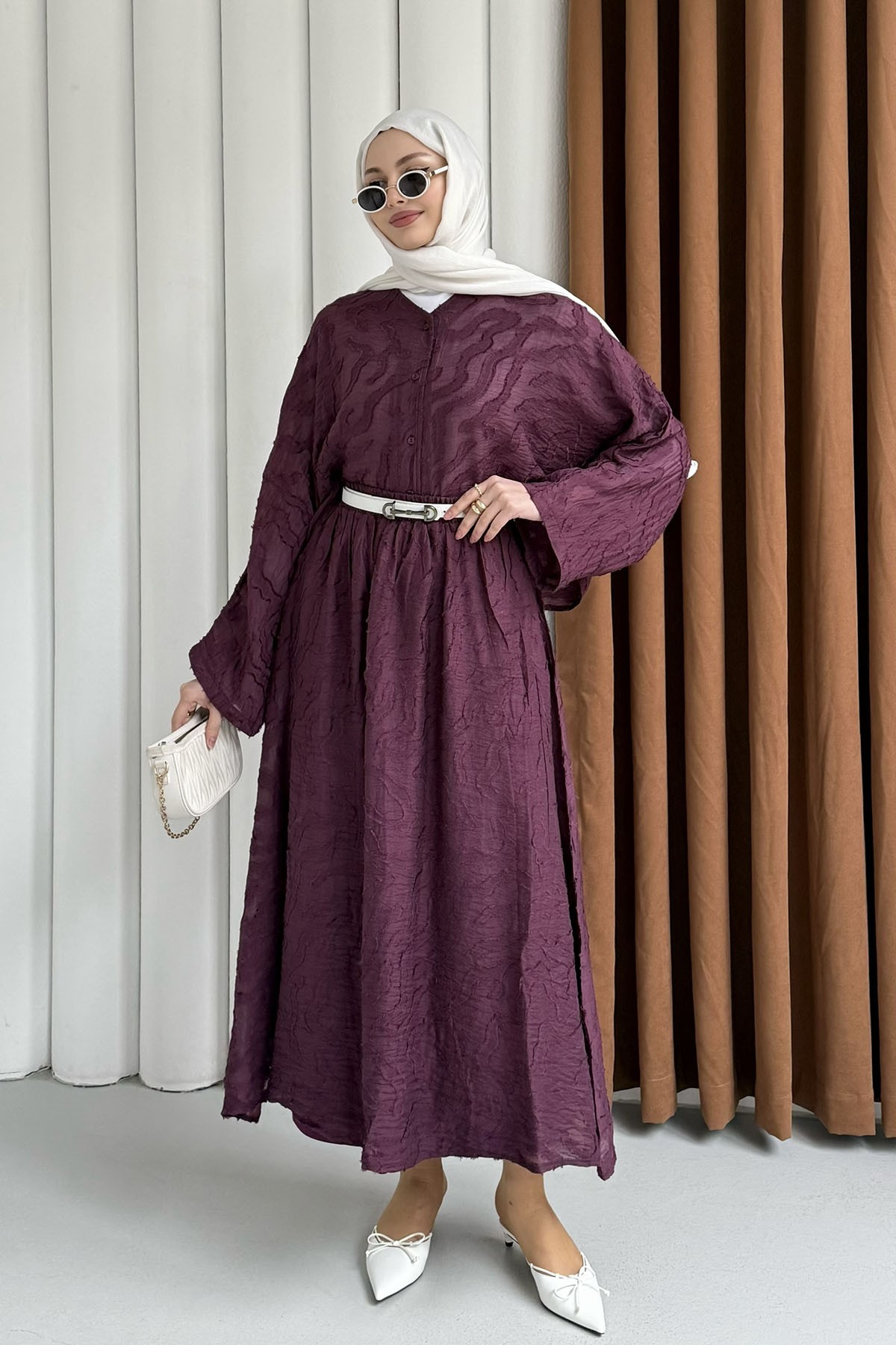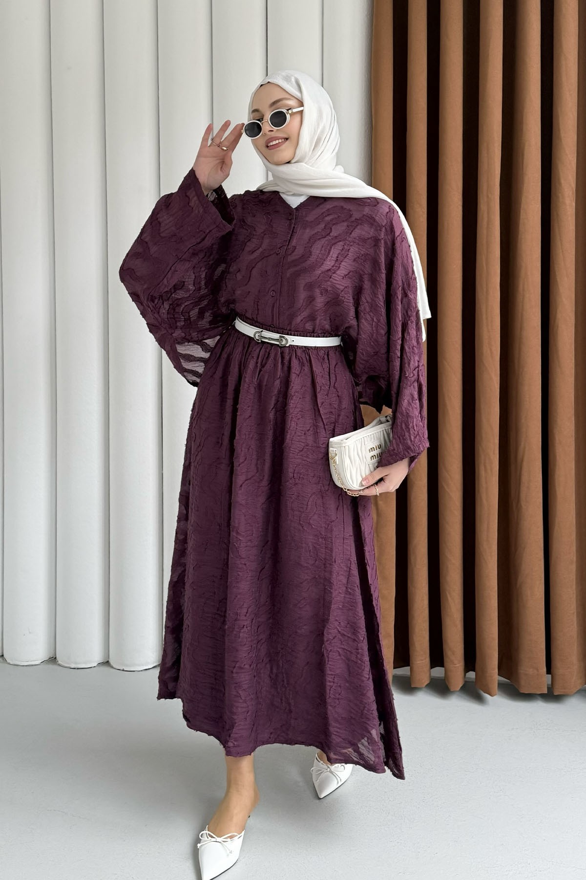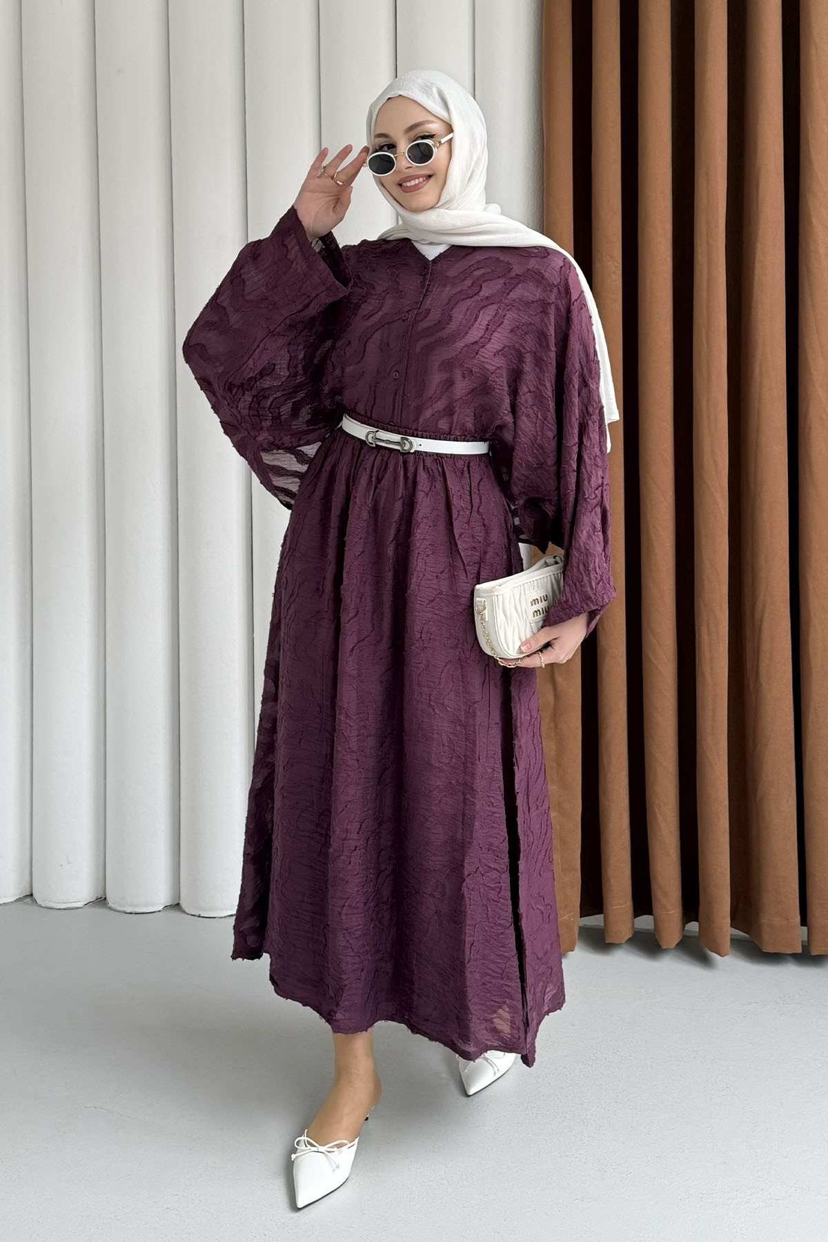 Kendinden Desenli Modal Kumaş Tesettür Takım-YEŞİL Kendinden Desenli Modal Kumaş Tesettür Takım-KAHVERENGİ Kendinden Desenli Modal Kumaş Tesettür Takım-BORDO