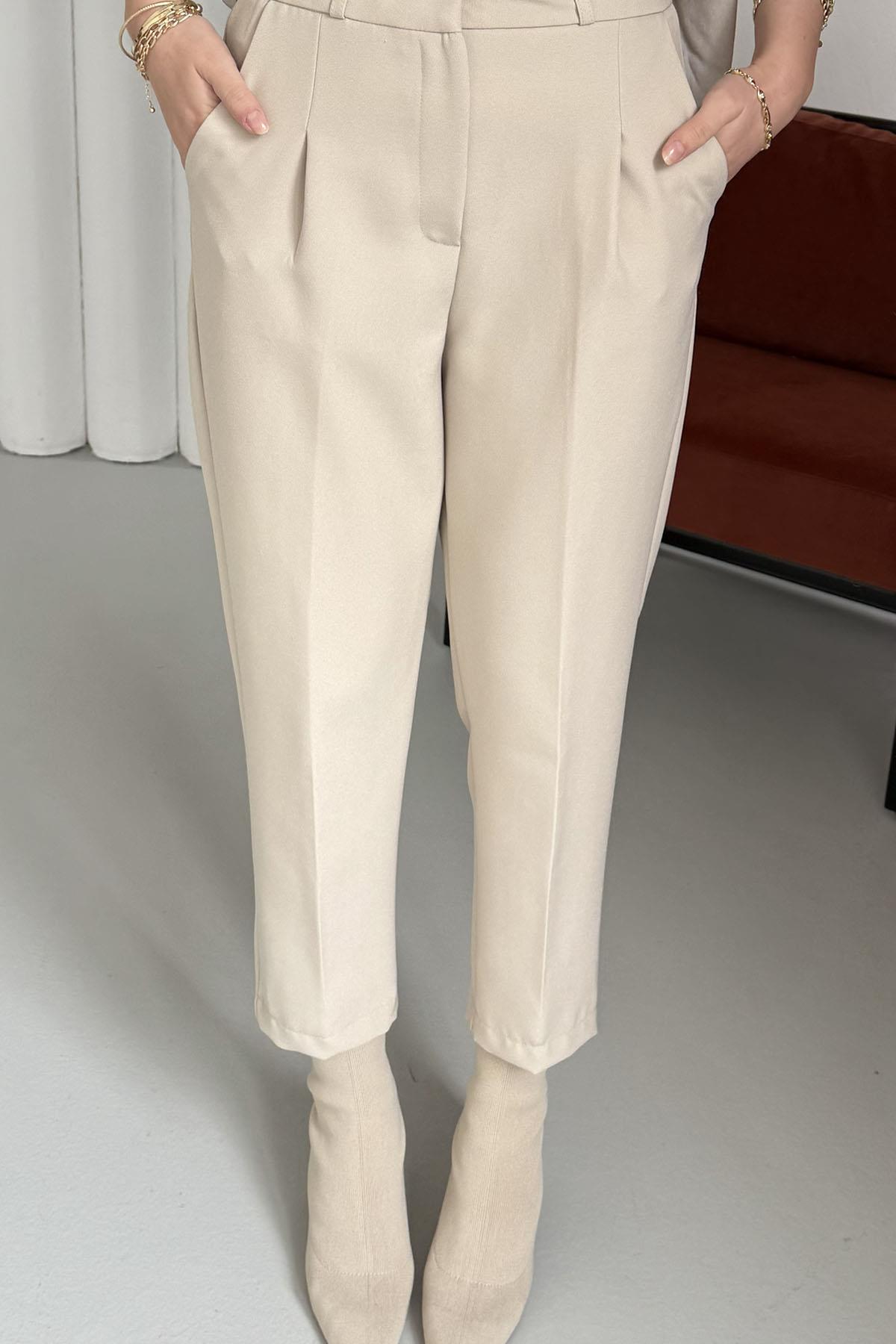 Kendinden Kemerli Kalem Pantolon-TAŞ (3790)