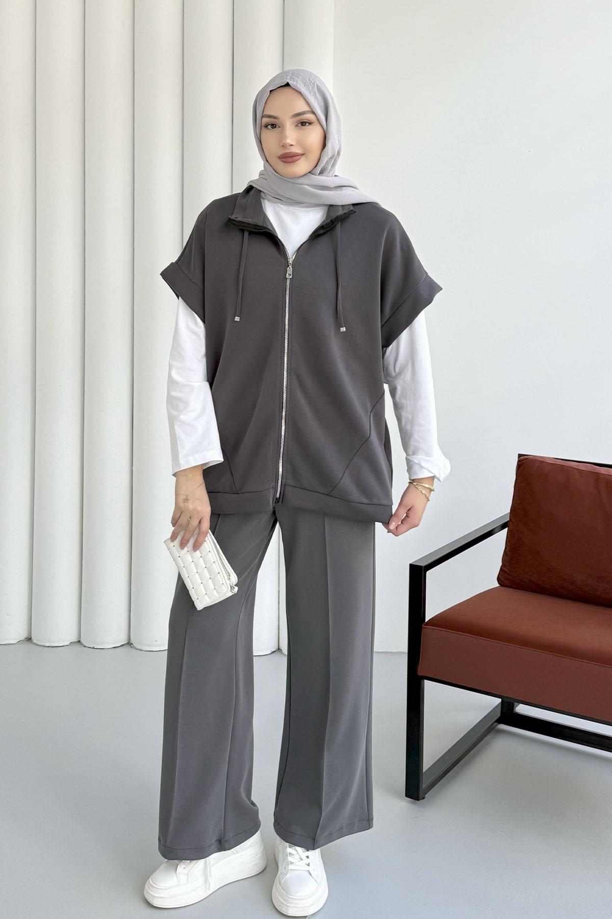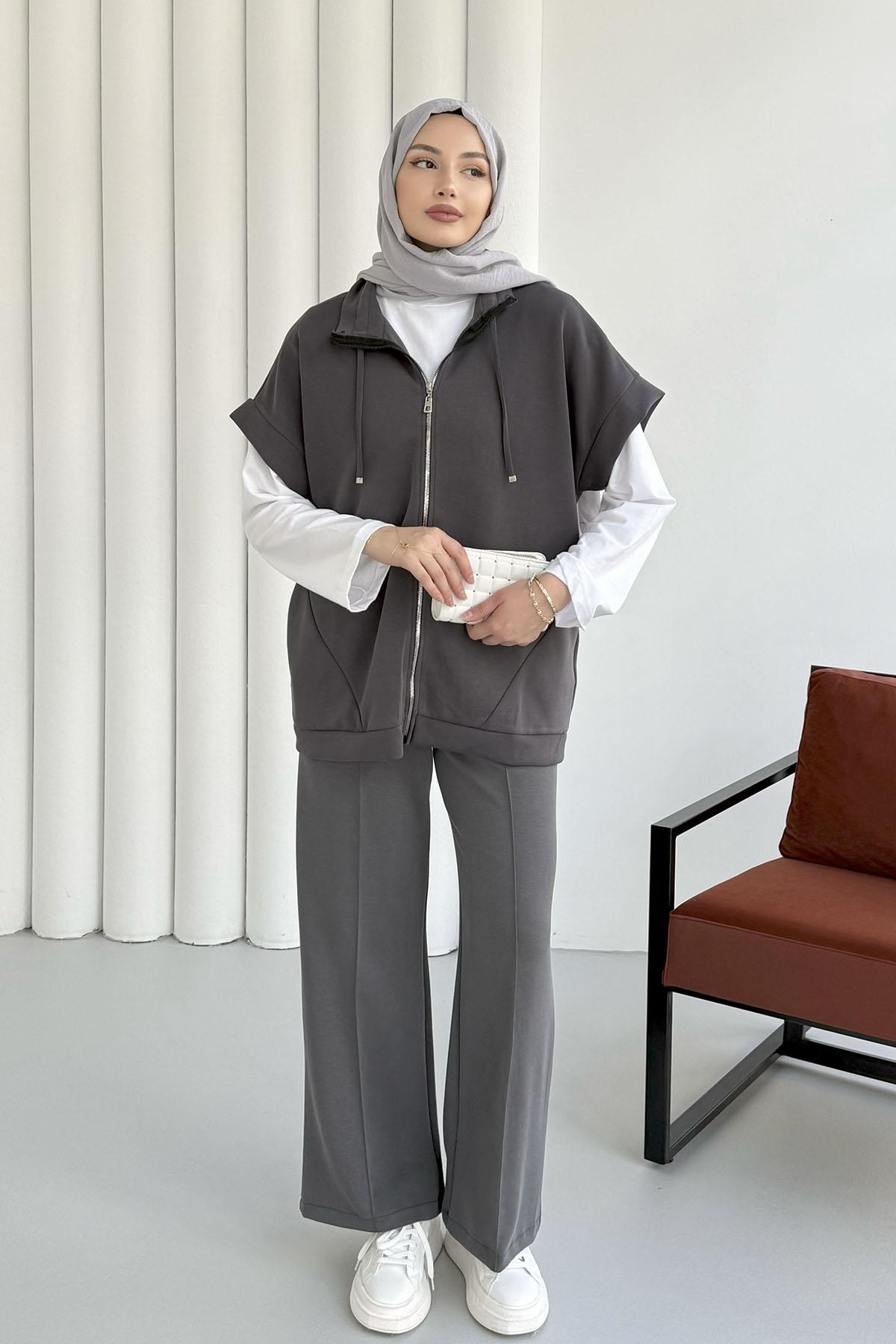 Kısa Kol Yıldız Aksesuarlı Bomber Yelek-ANTRASİT (24353)