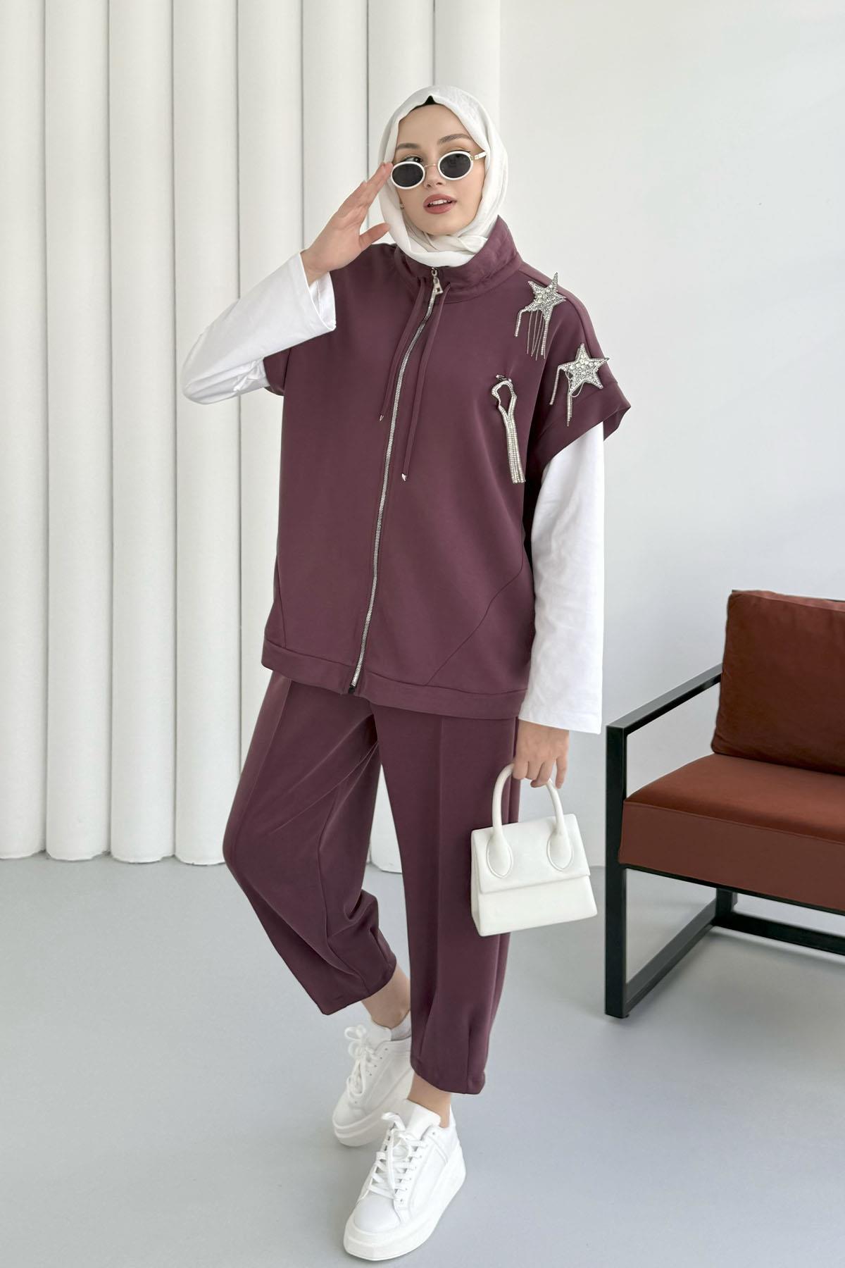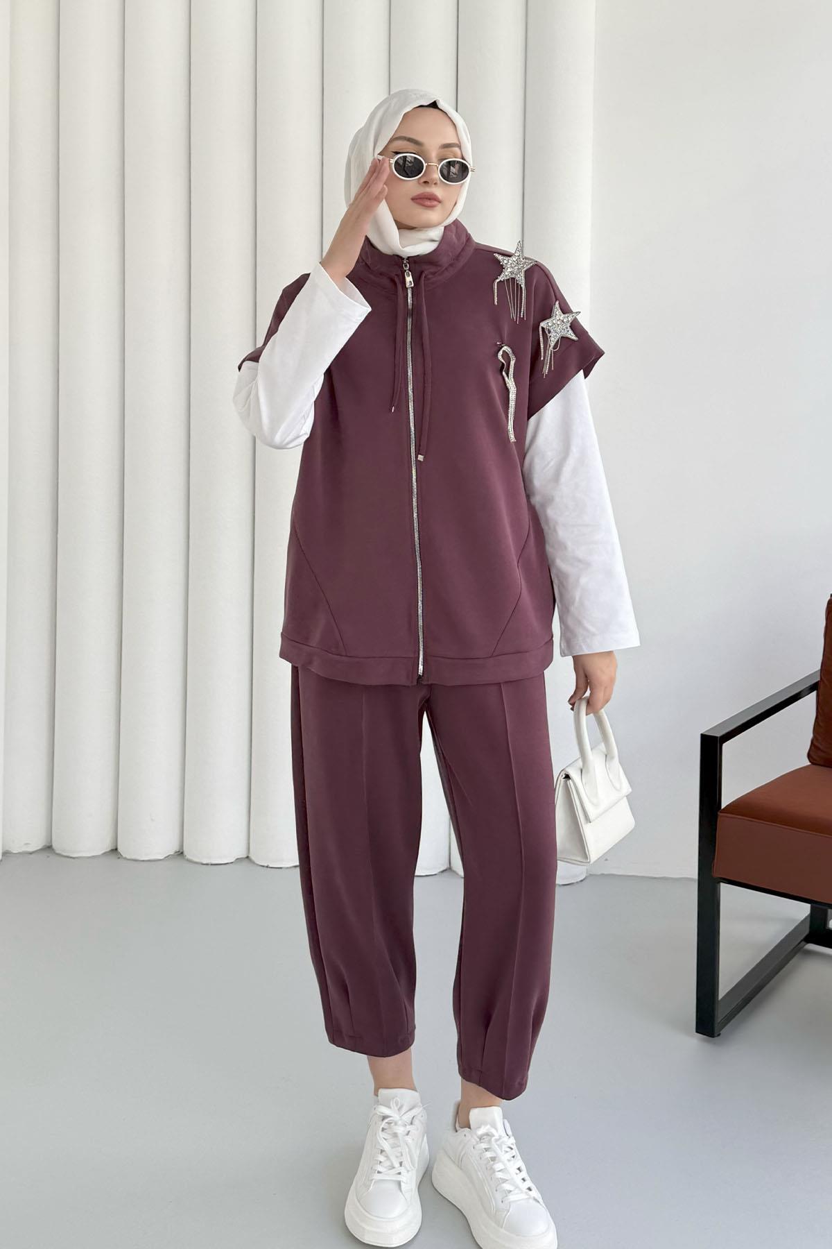 Kısa Kol Yıldız Aksesuarlı Bomber Yelek-BORDO (24353)