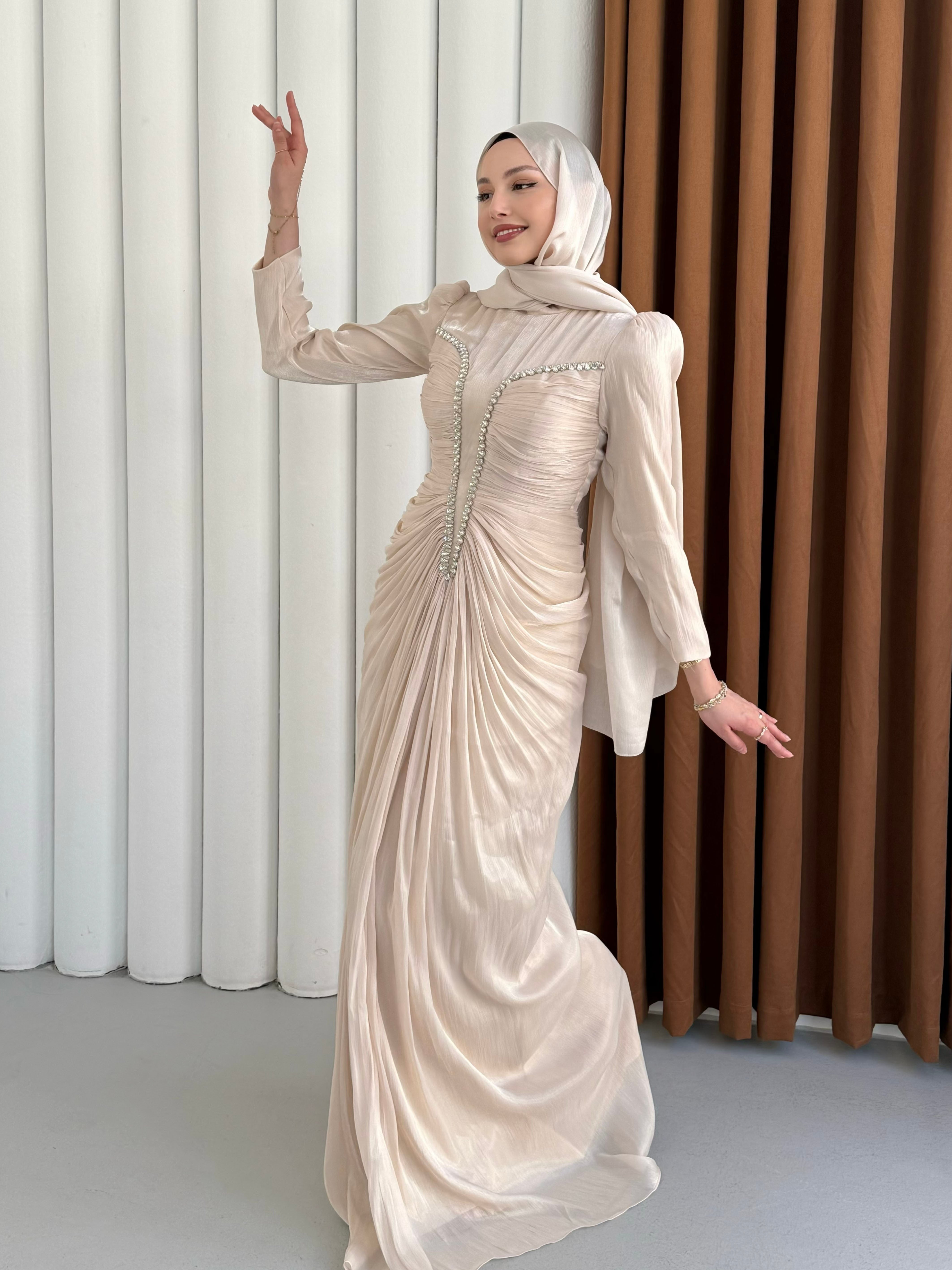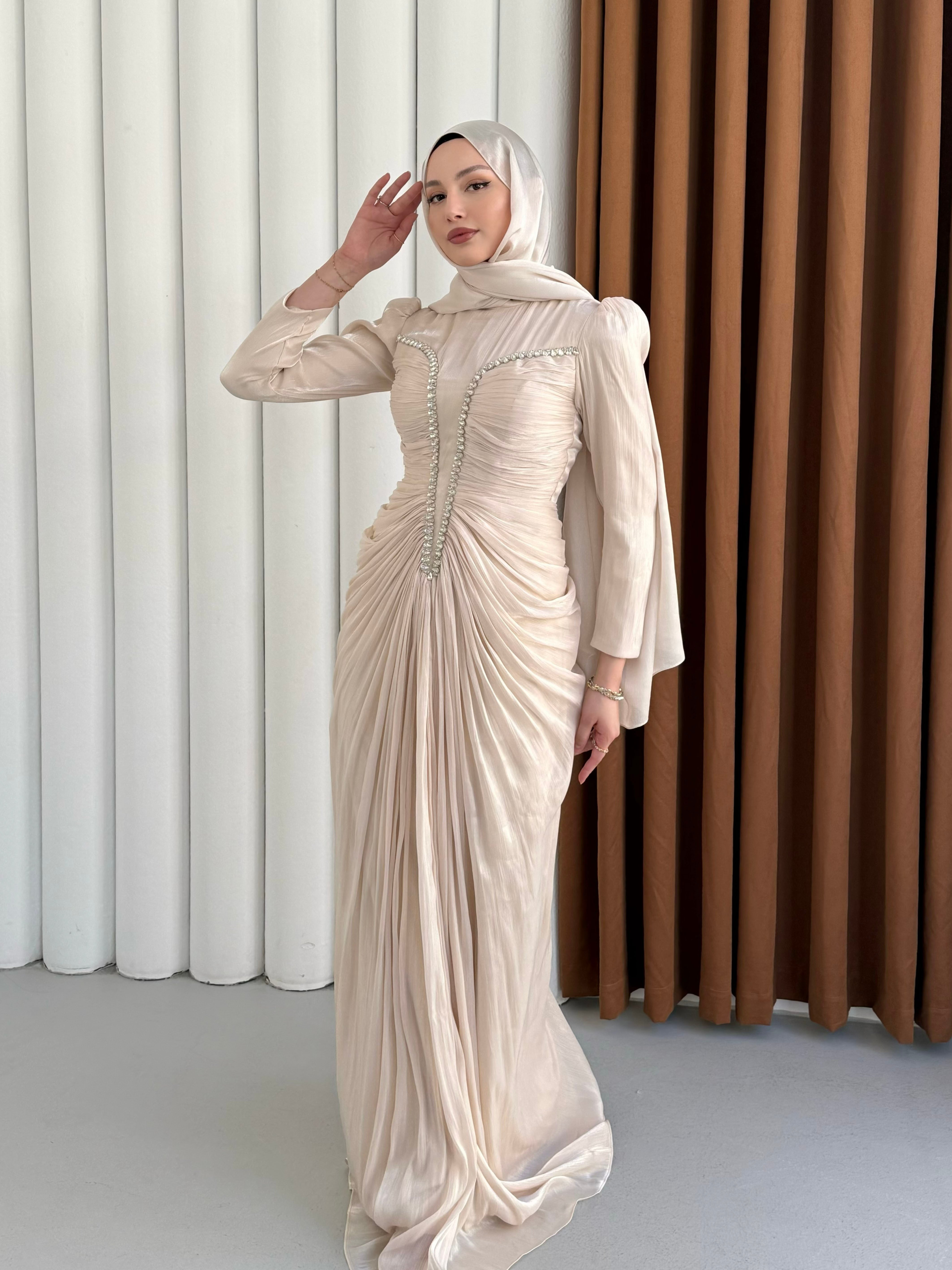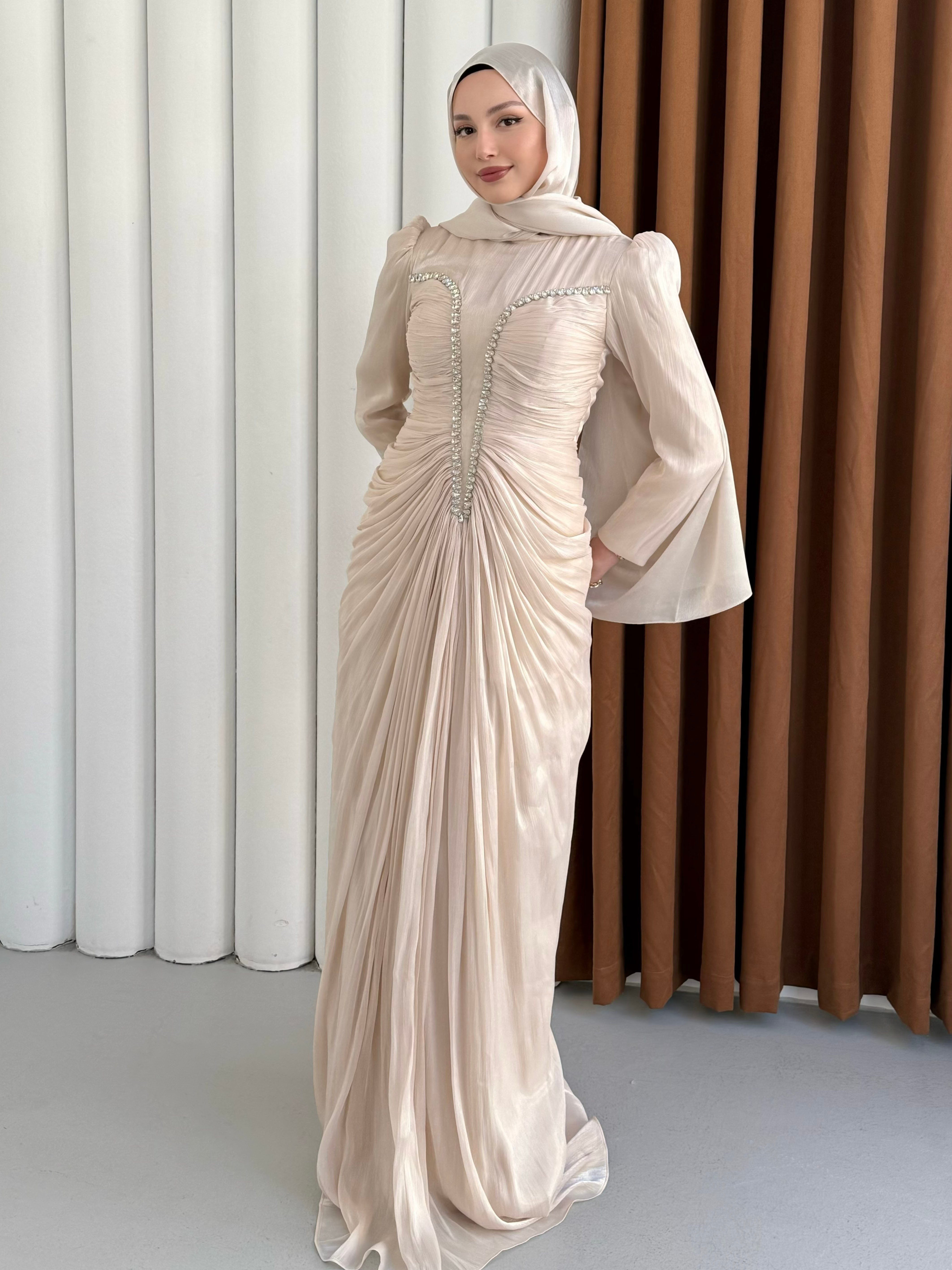 Luxe Ön Taş İşlemeli Tesettür Abiye-TAŞ (5201)