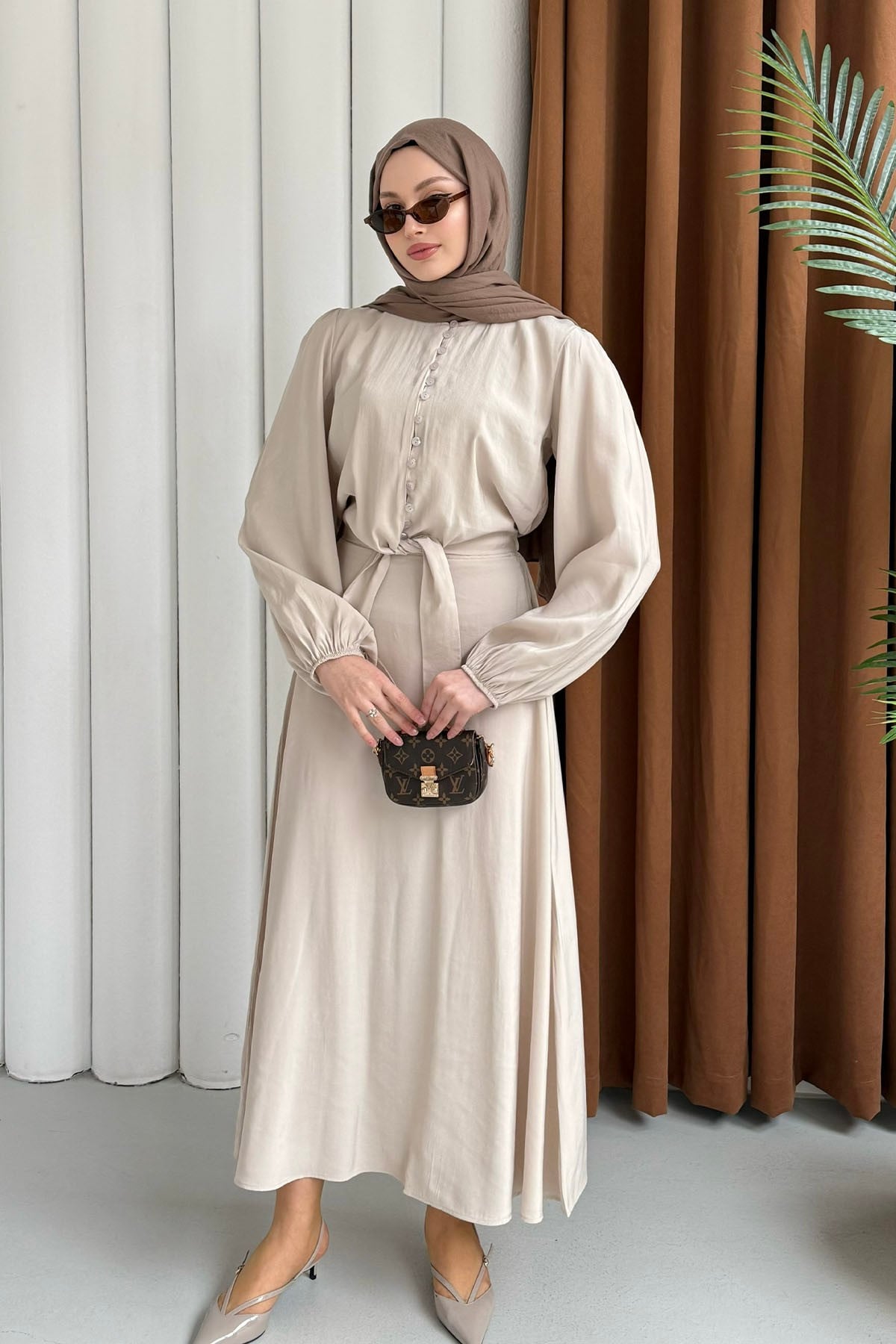 Marine Önü Bağlamalı Etekli Tesettür Takım-TAŞ (9037)