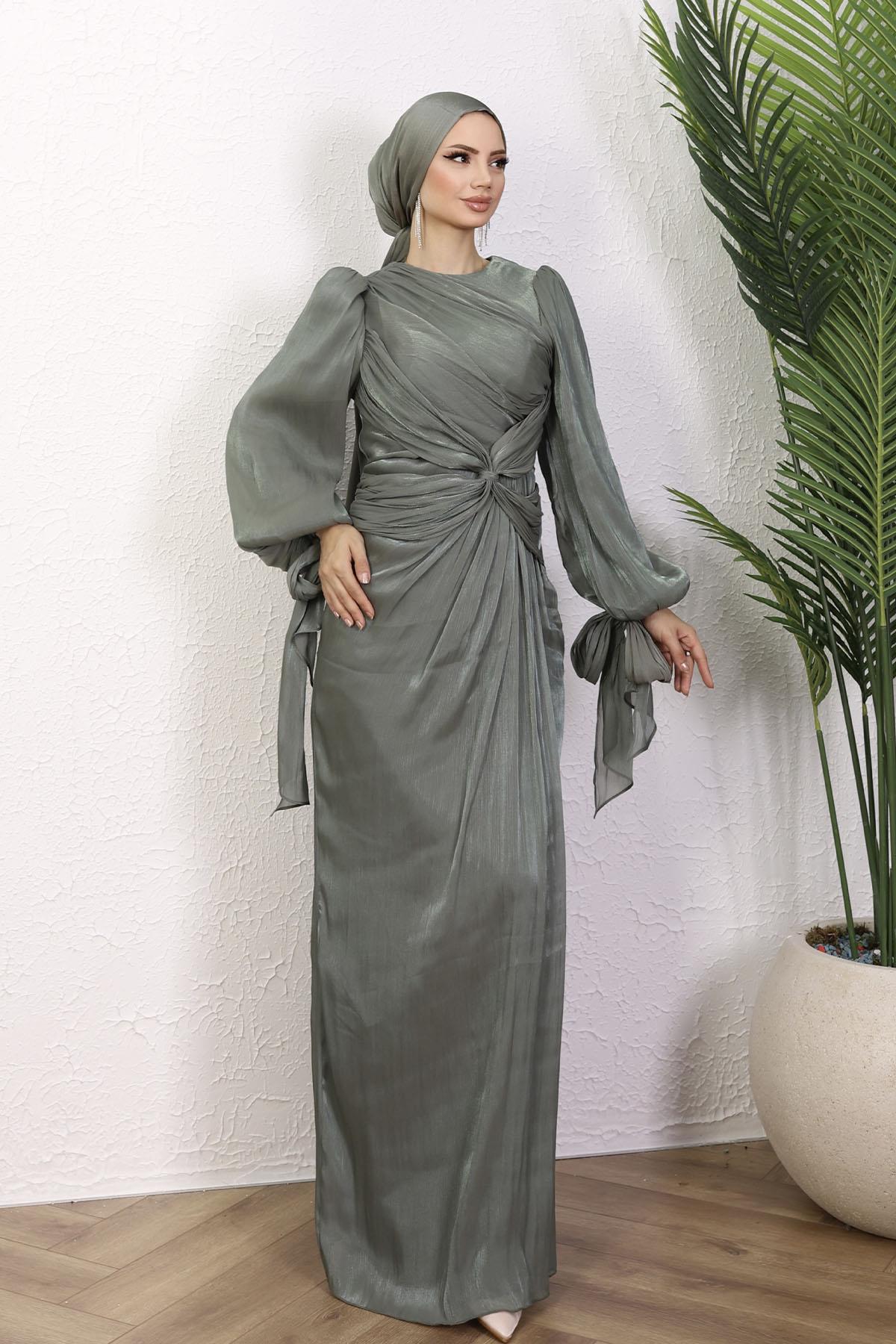 Mermaid Bağlama Detaylı Tesettür Abiye-YEŞİL (4726)