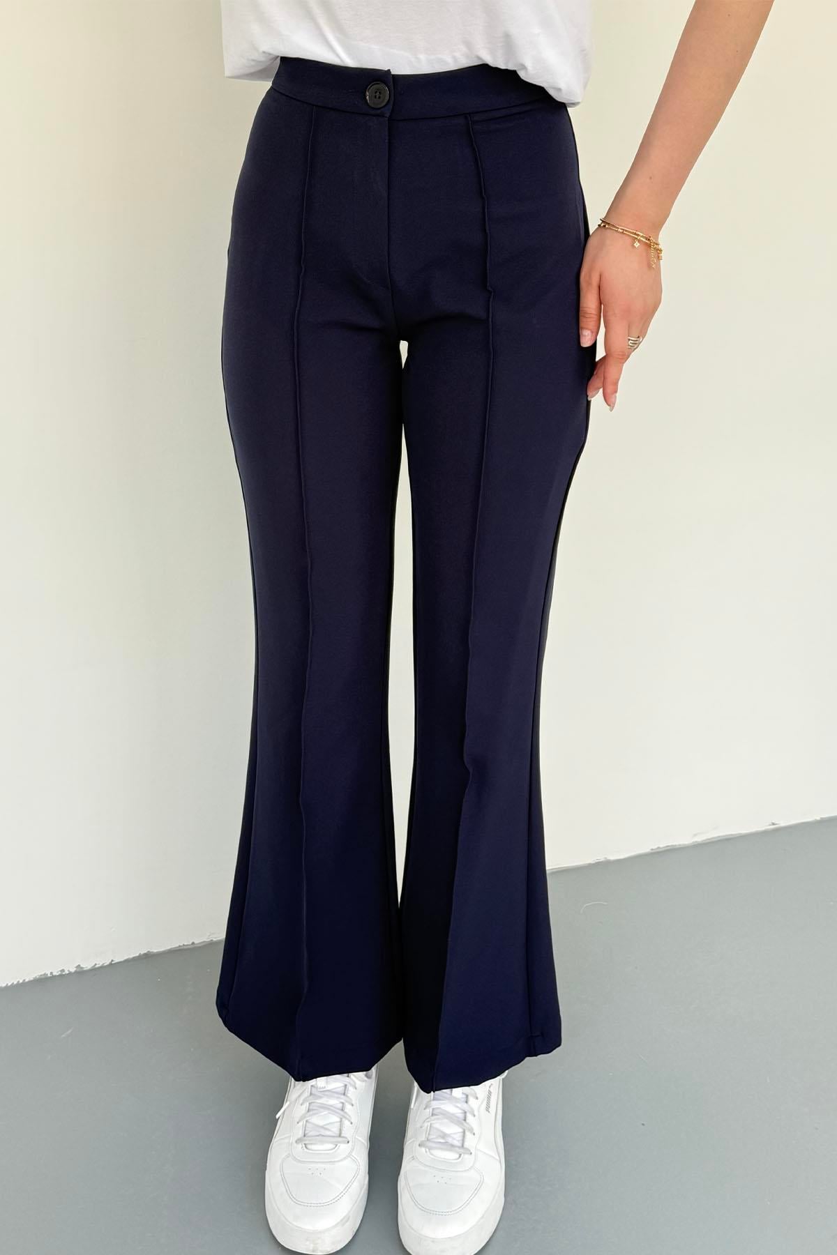 Nervür Dikişli İspanyol Pantolon-LACİVERT
