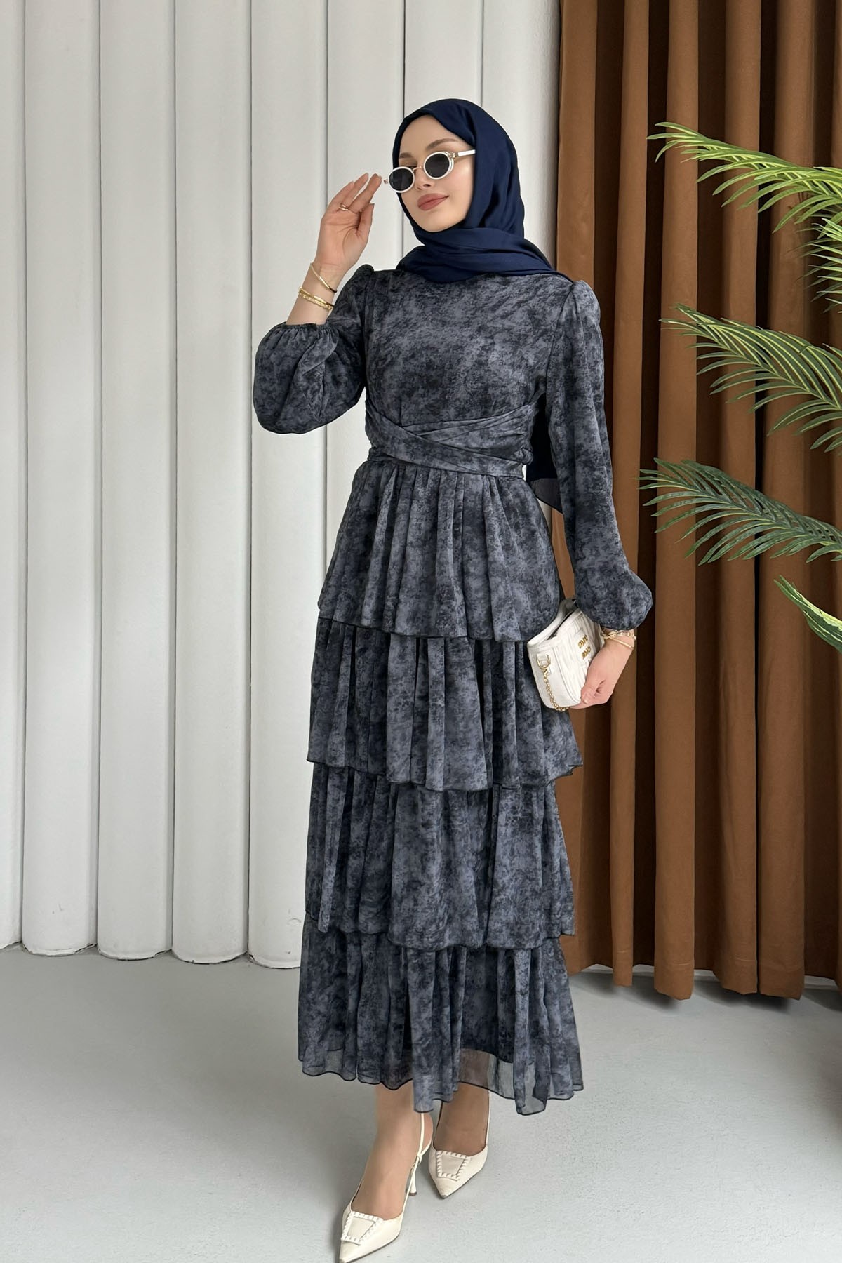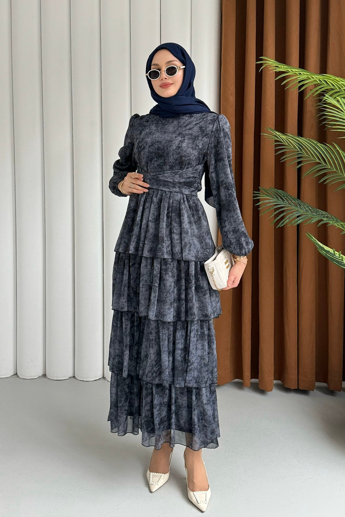 Neva Otantik Motifli Şifon Tesettür Elbise-TOPRAK Neva Otantik Motifli Şifon Tesettür Elbise-SİYAH