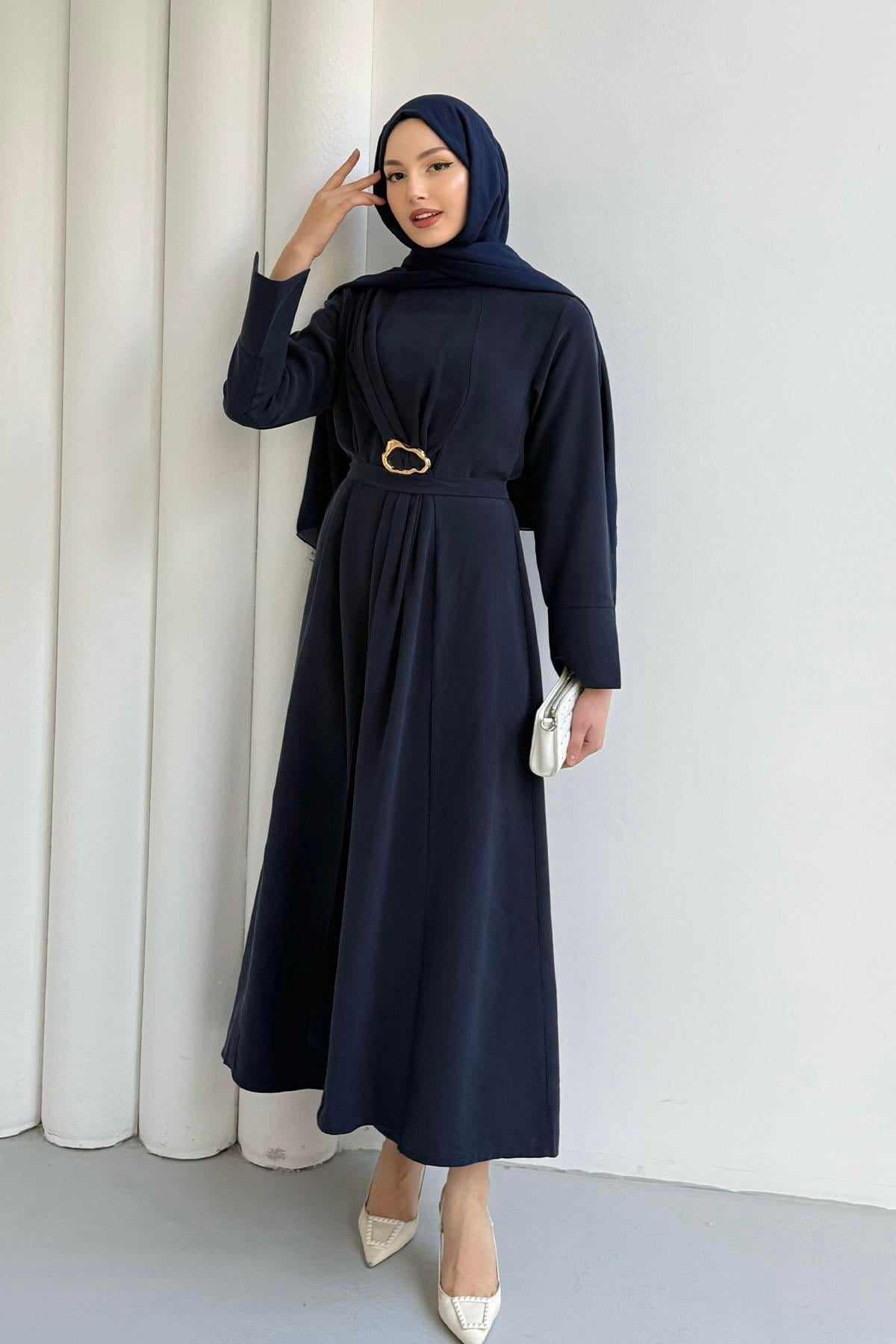 Ön Toka Detaylı Modal Tesettür Elbise-LACİVERT (25126)