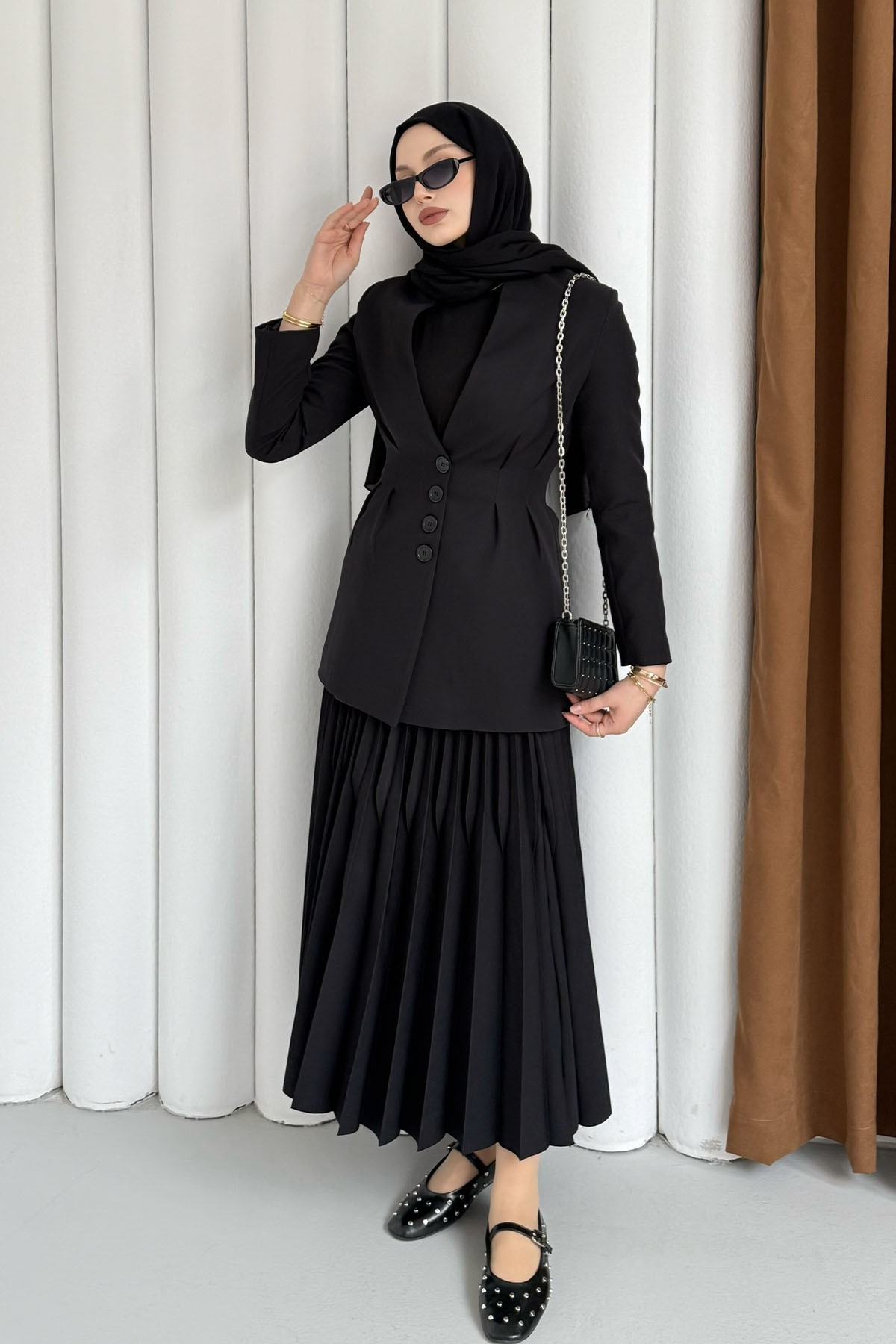 Ön Ve Arka Çift Pensli Yakasız Ceket-SİYAH (1201)