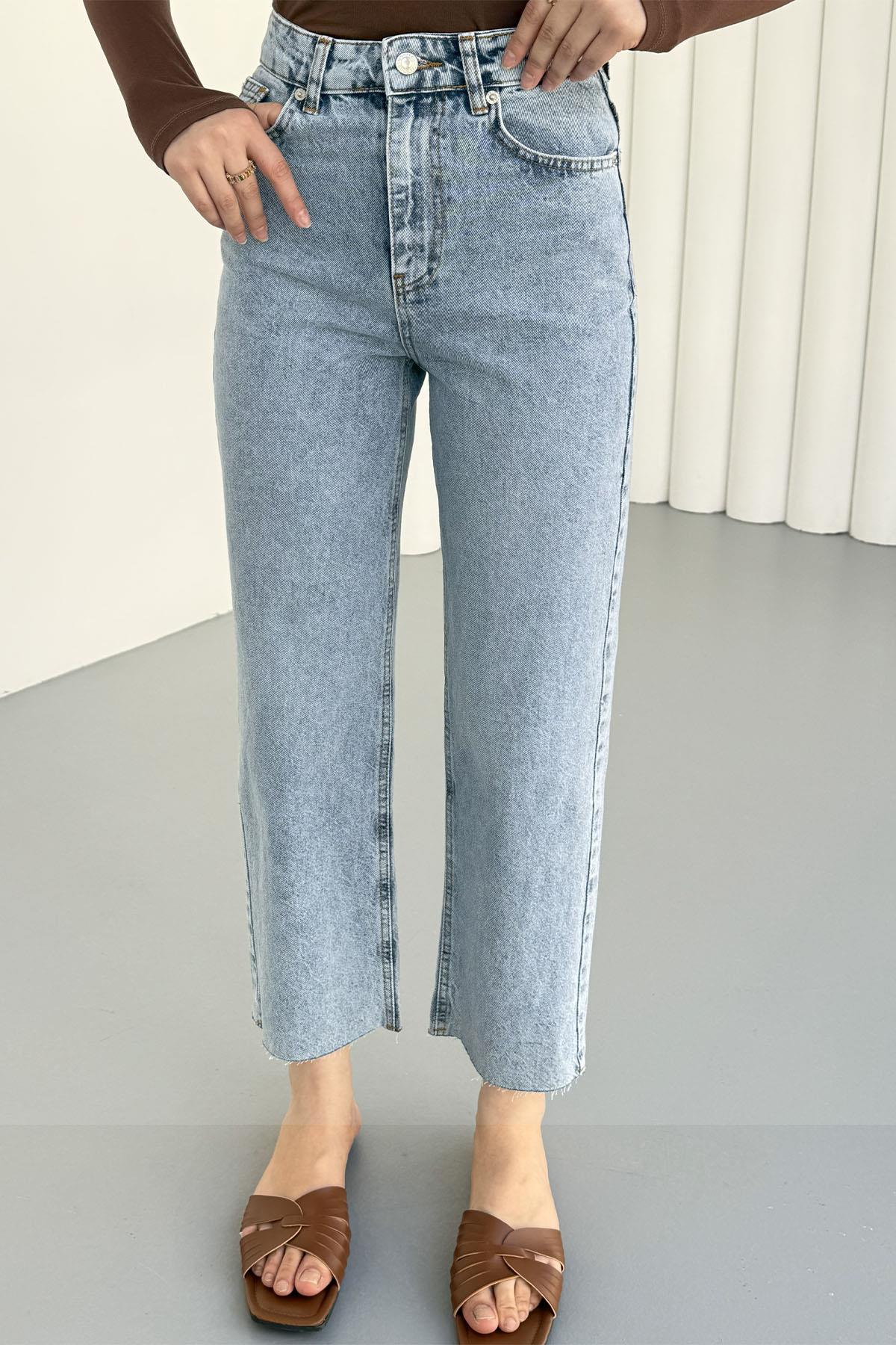 Paça Kesik Denim Pantolon-KOYU MAVİ (32196)