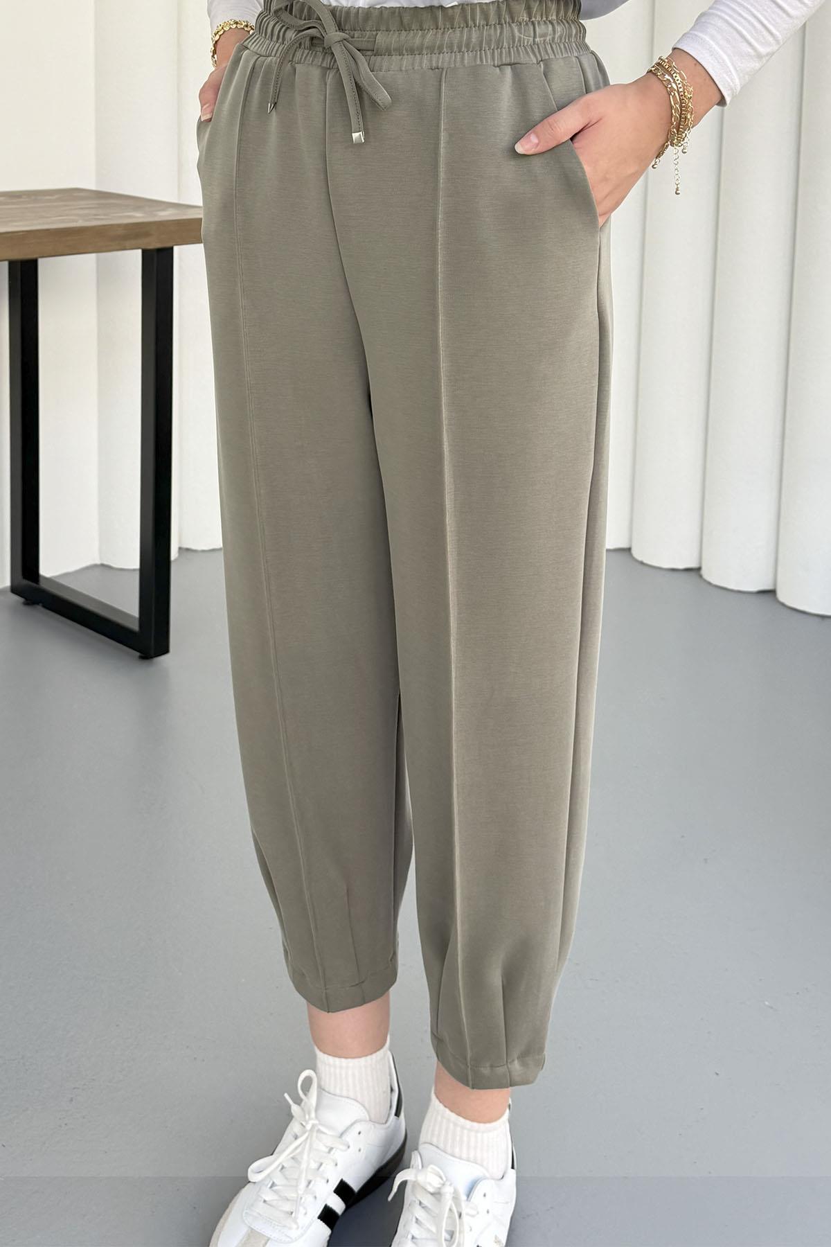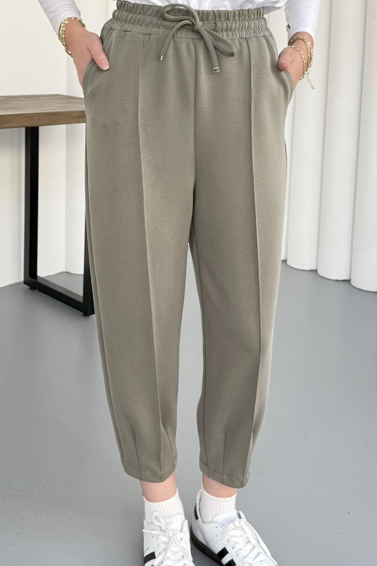 Paçası Dikişli Oysho Kumaş Pantolon-HAKİ YEŞİL (26098)