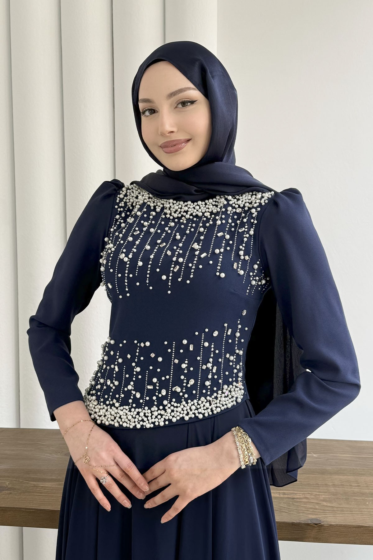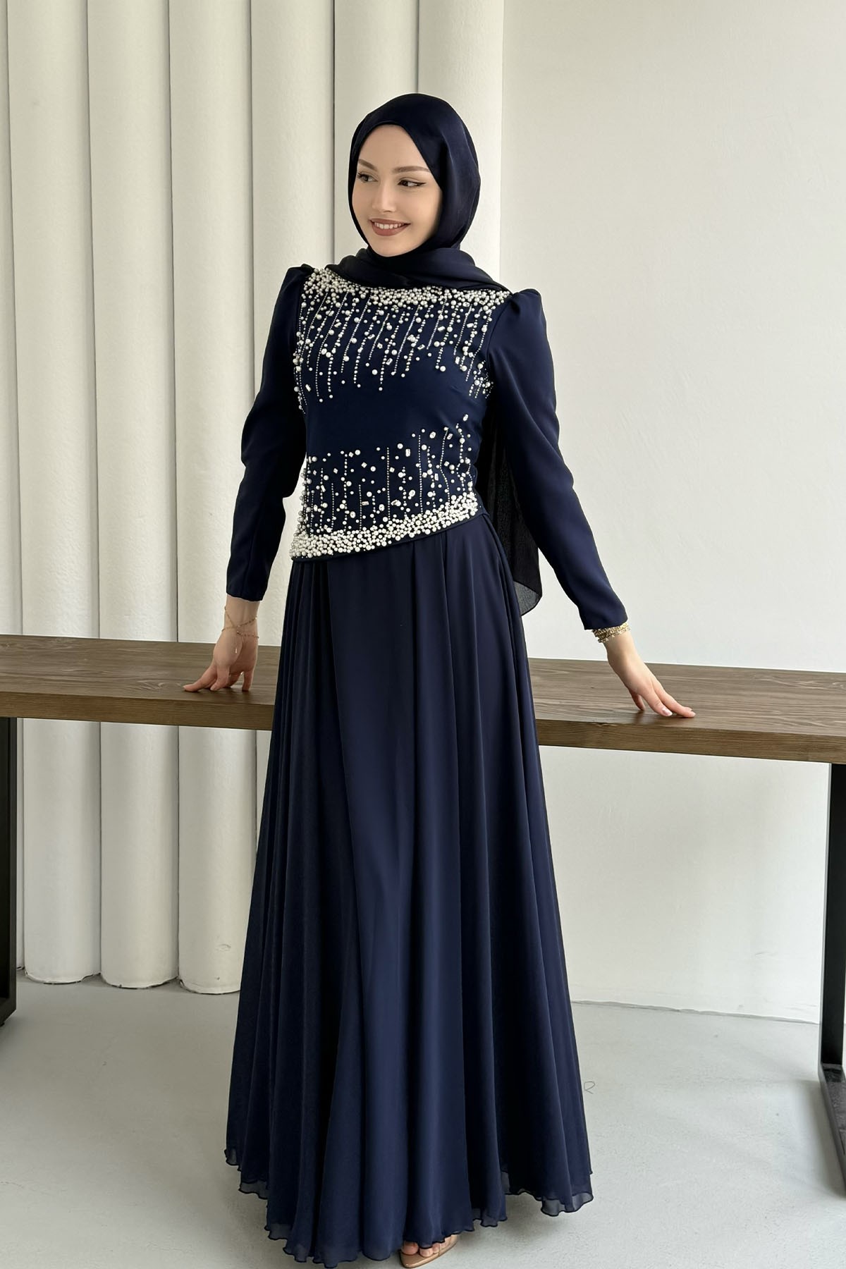 Premium Üst Taş İşlemeli Tesettür Abiye-LACİVERT (5205)