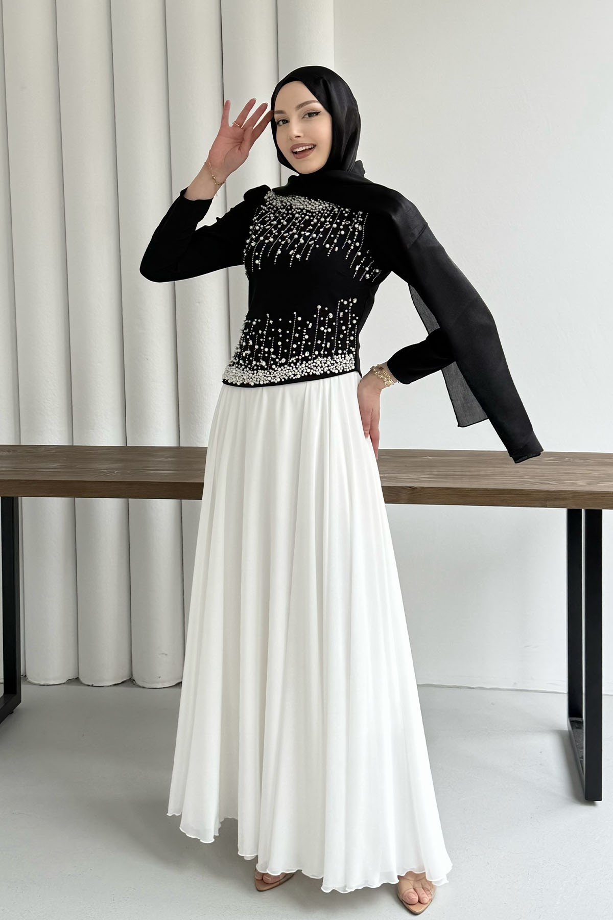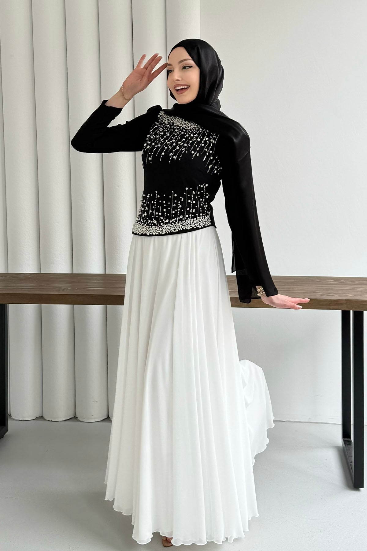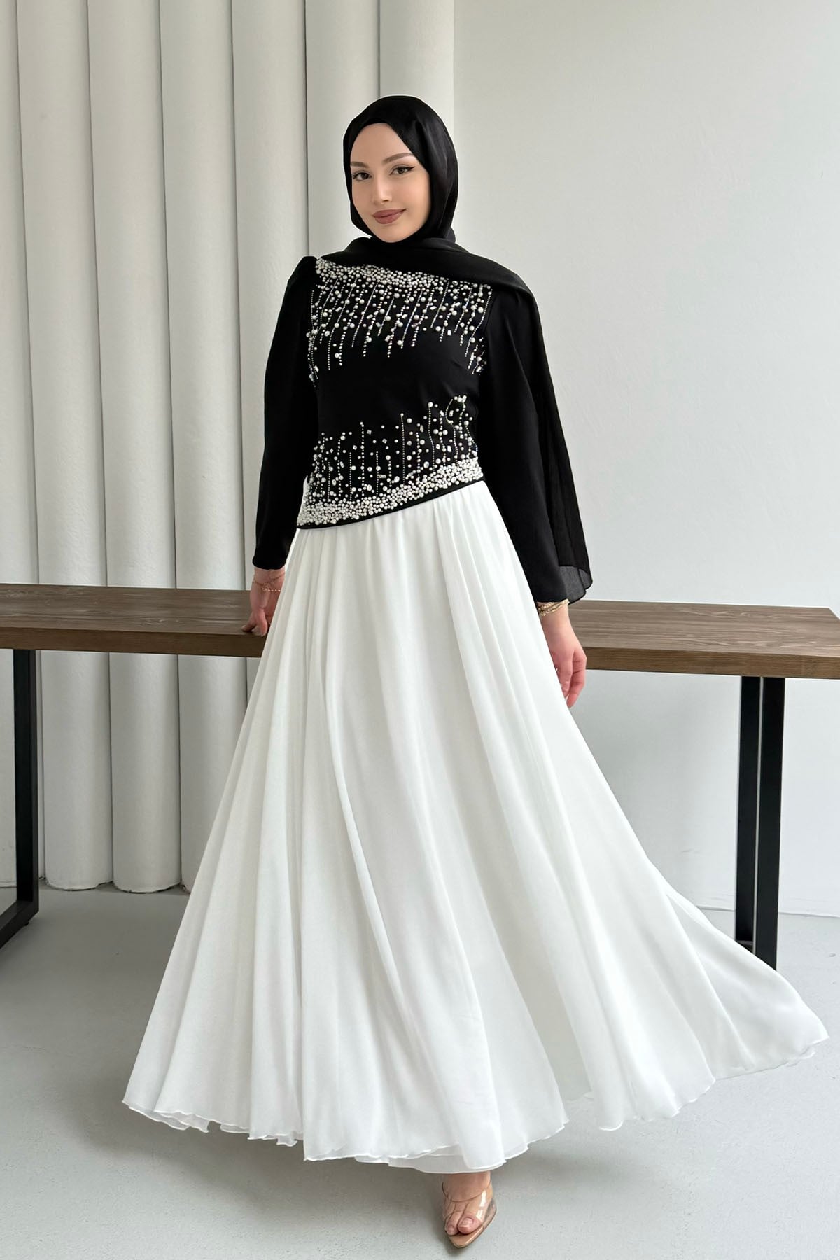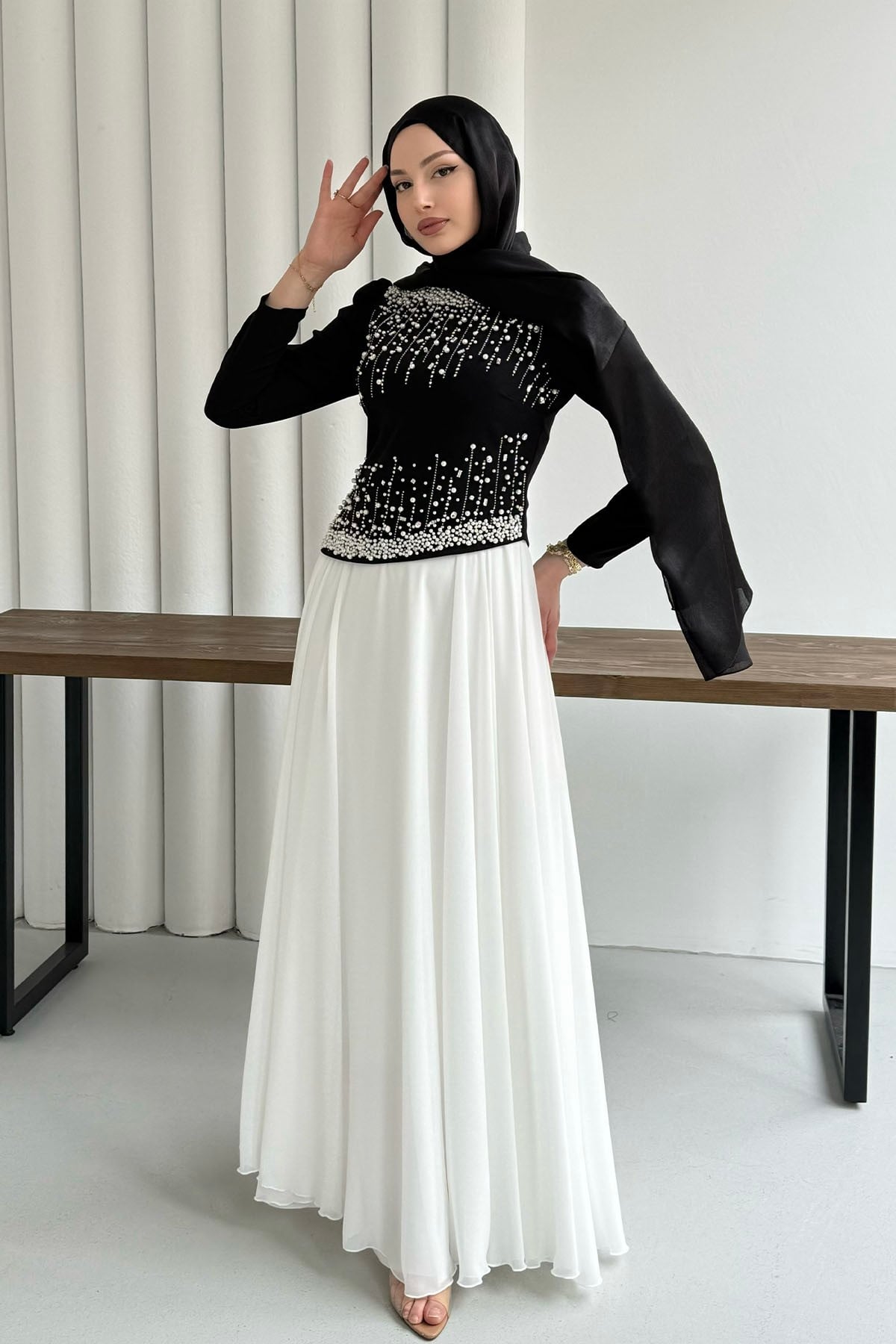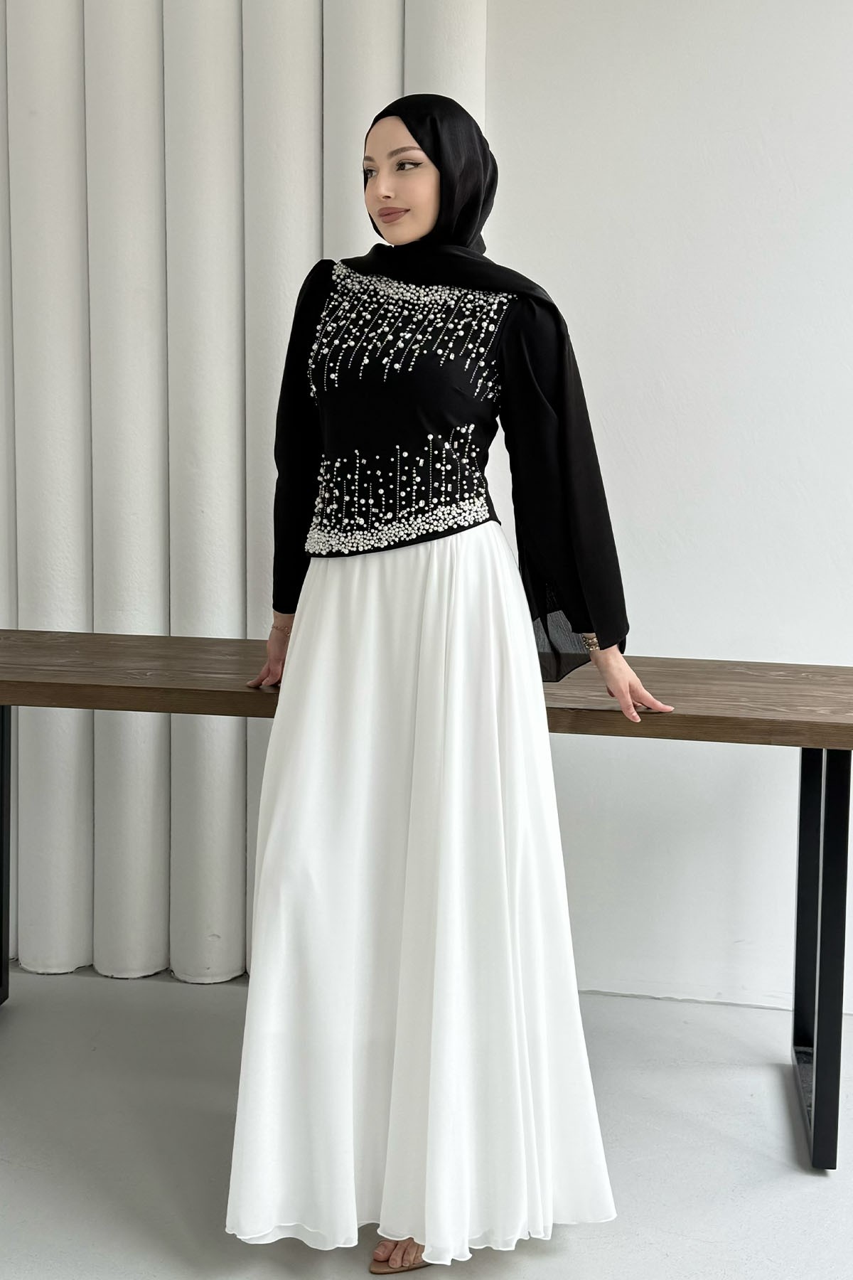 Premium Üst Taş İşlemeli Tesettür Abiye-SİYAH (5205)