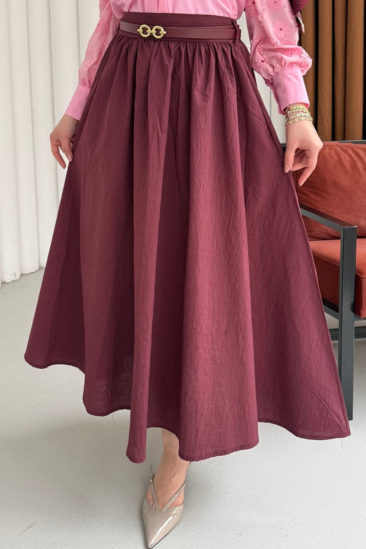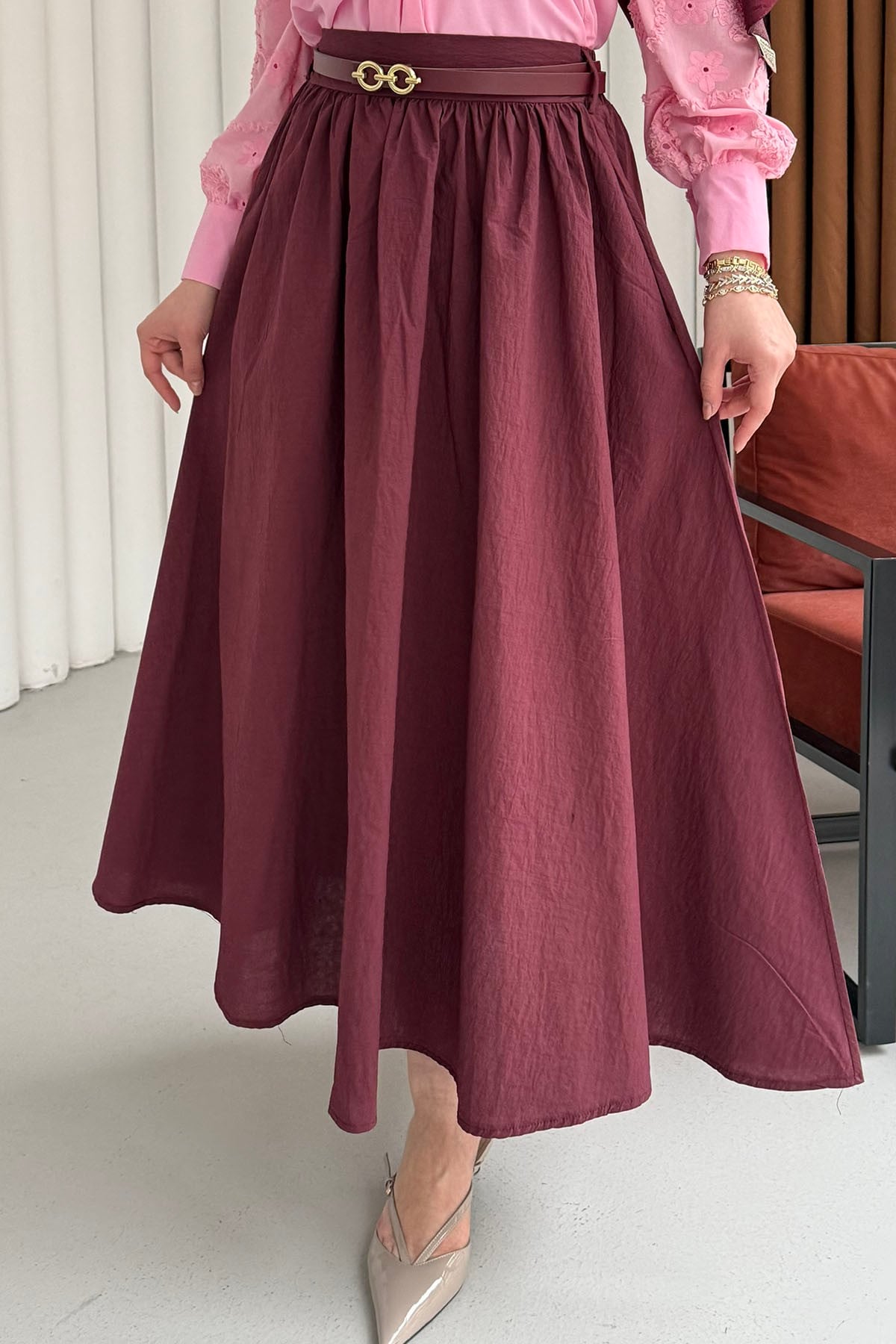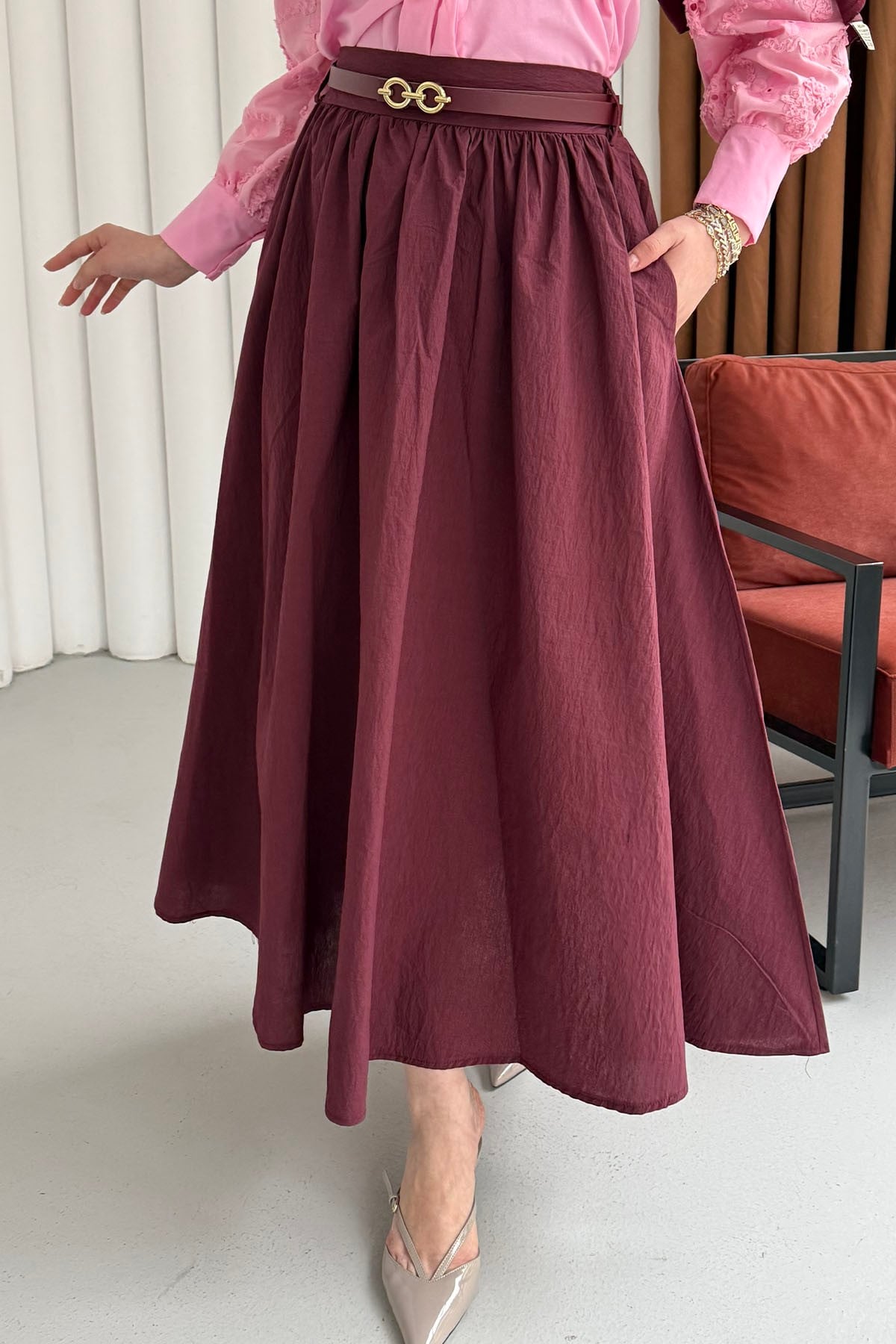 Rahat Kalıp Cepli Kemer Detaylı Lastikli Bel Etek-BORDO (9065)