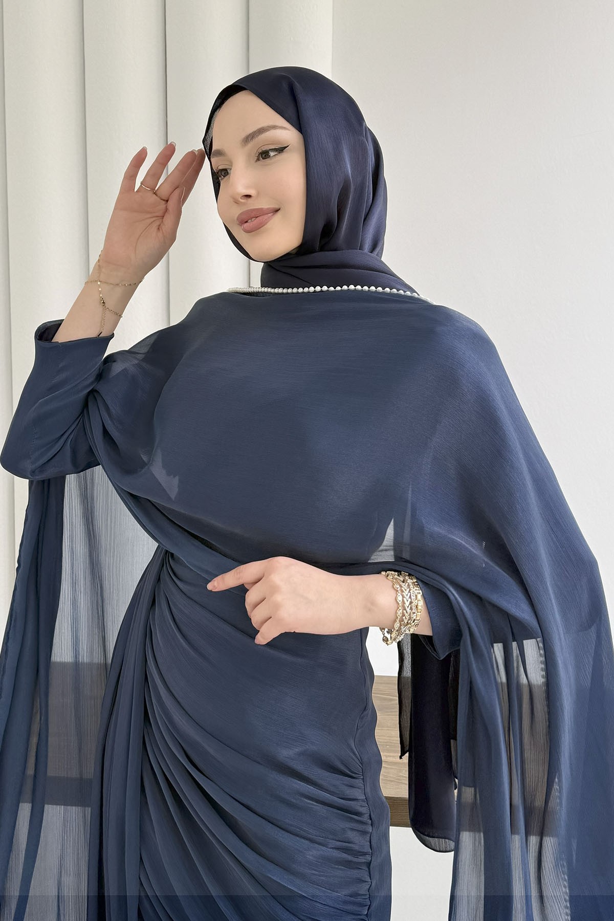 Royal İnci Fular & Şal Detaylı Tesettür Abiye-LACİVERT (5591)