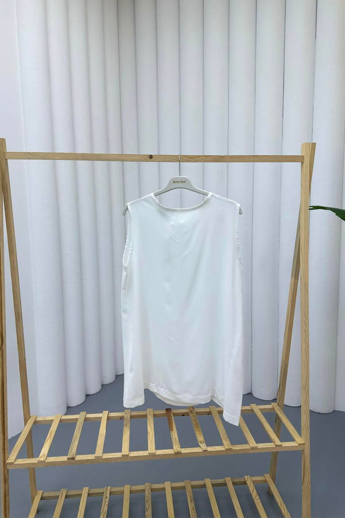 Sıfır Kol Saten İçlik-BEYAZ (202)