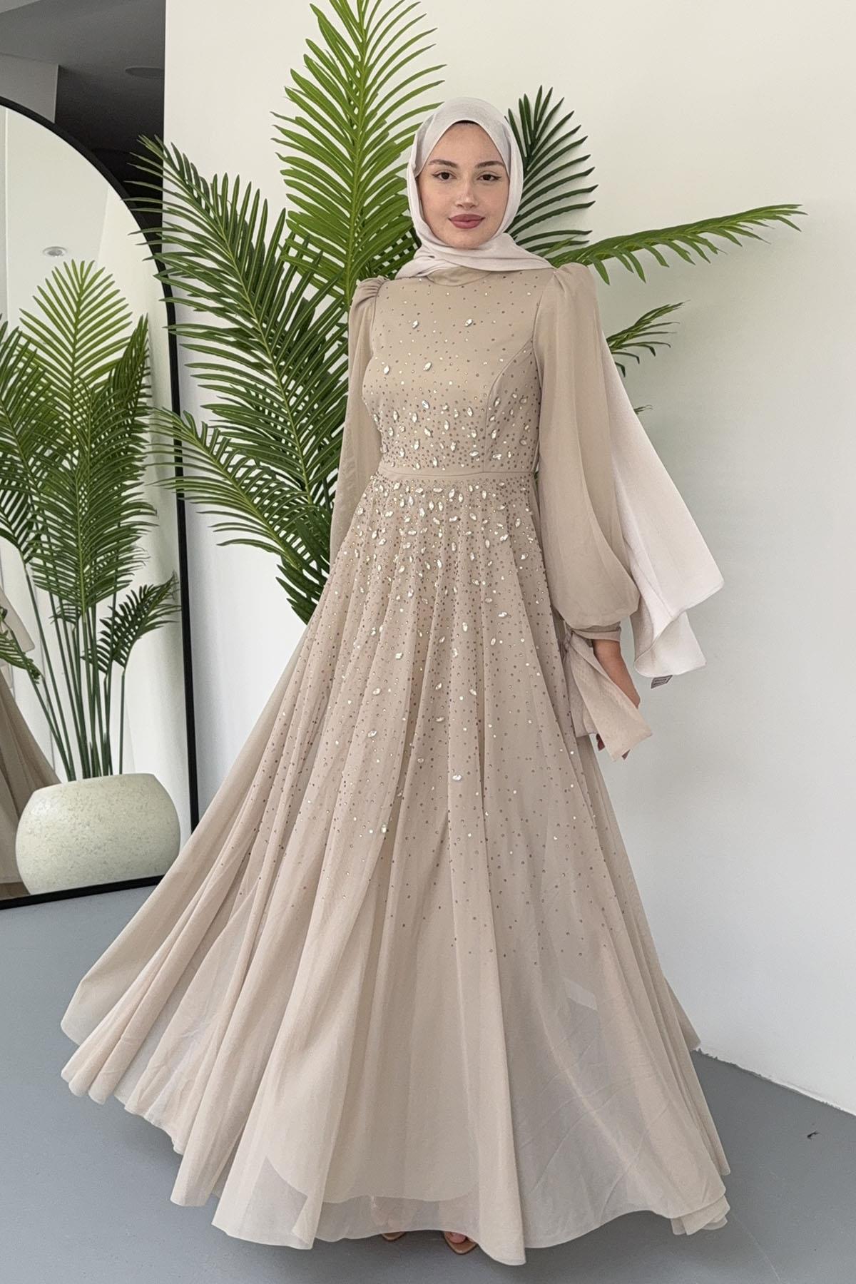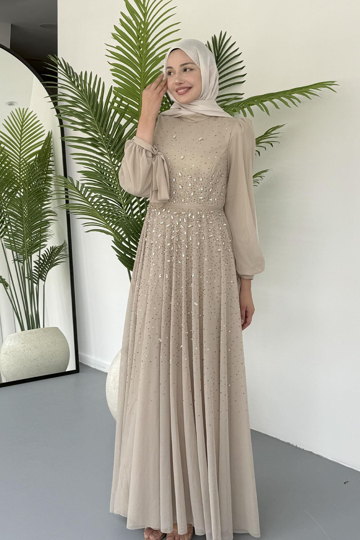 Taş İşlemeli Duru Tesettür Abiye-TAŞ (5283)