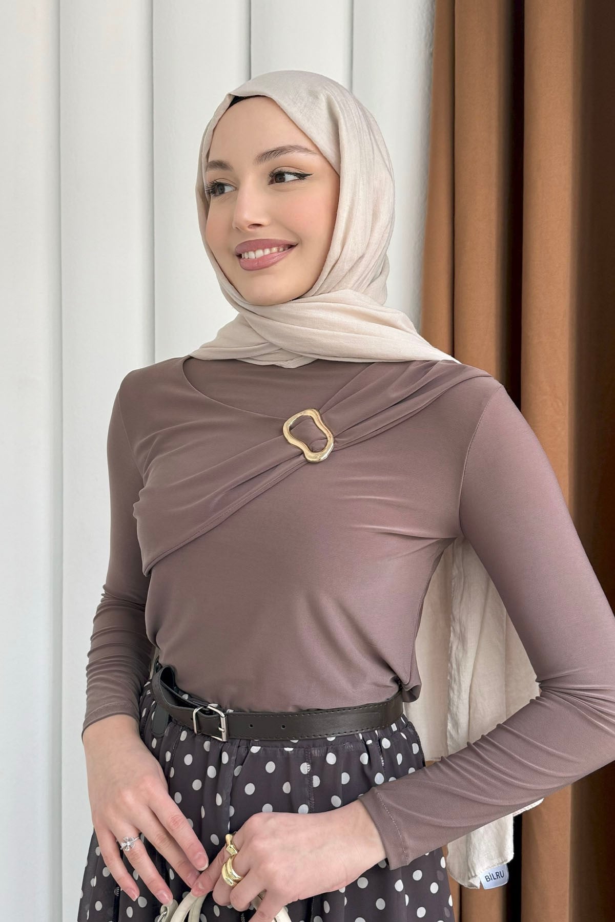 Toka Detaylı Sandy Bluz-LACİVERT Toka Detaylı Sandy Bluz-SİYAH Toka Detaylı Sandy Bluz-VİZON Toka Detaylı Sandy Bluz-BORDO