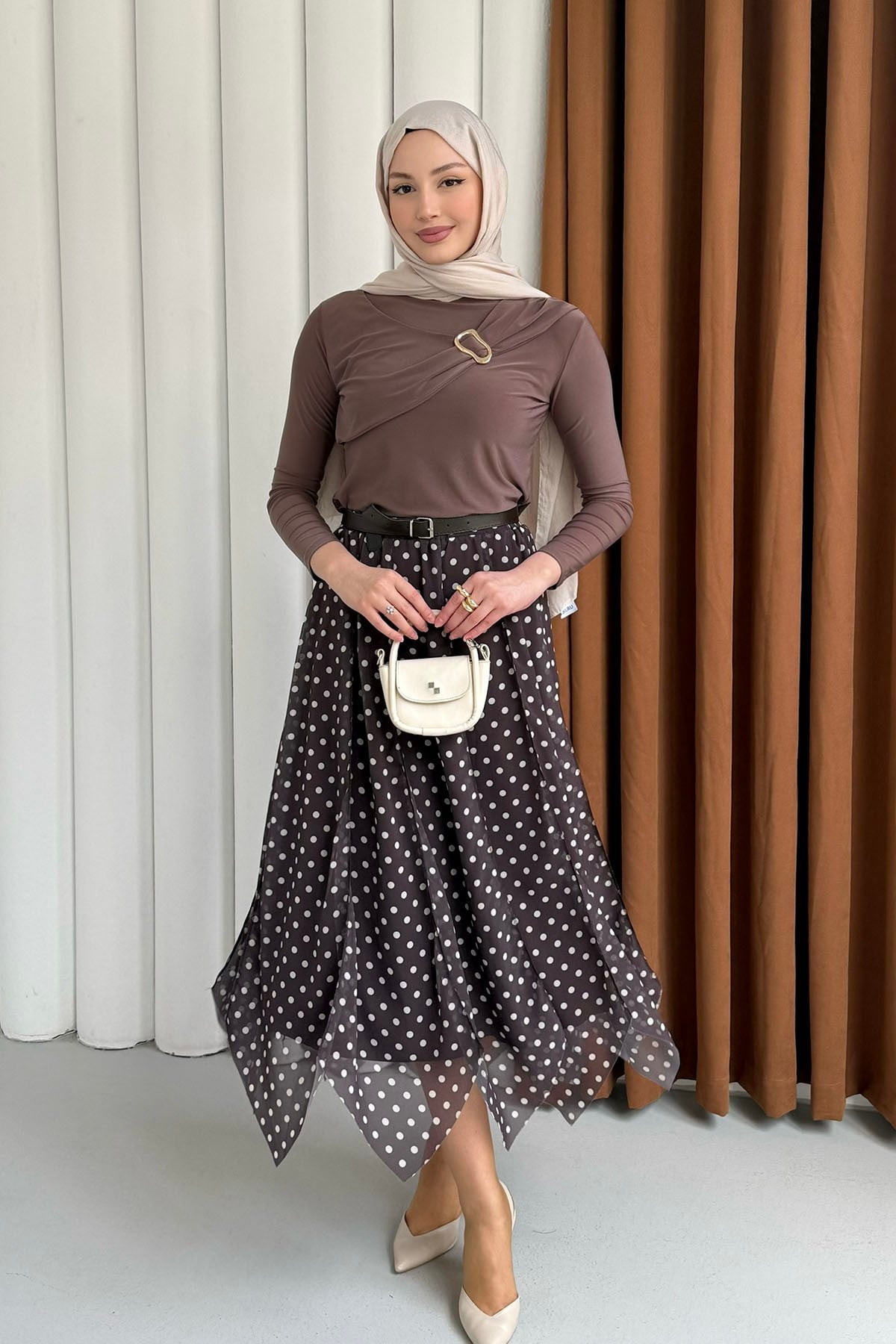Toka Detaylı Sandy Bluz-VİZON (3456)