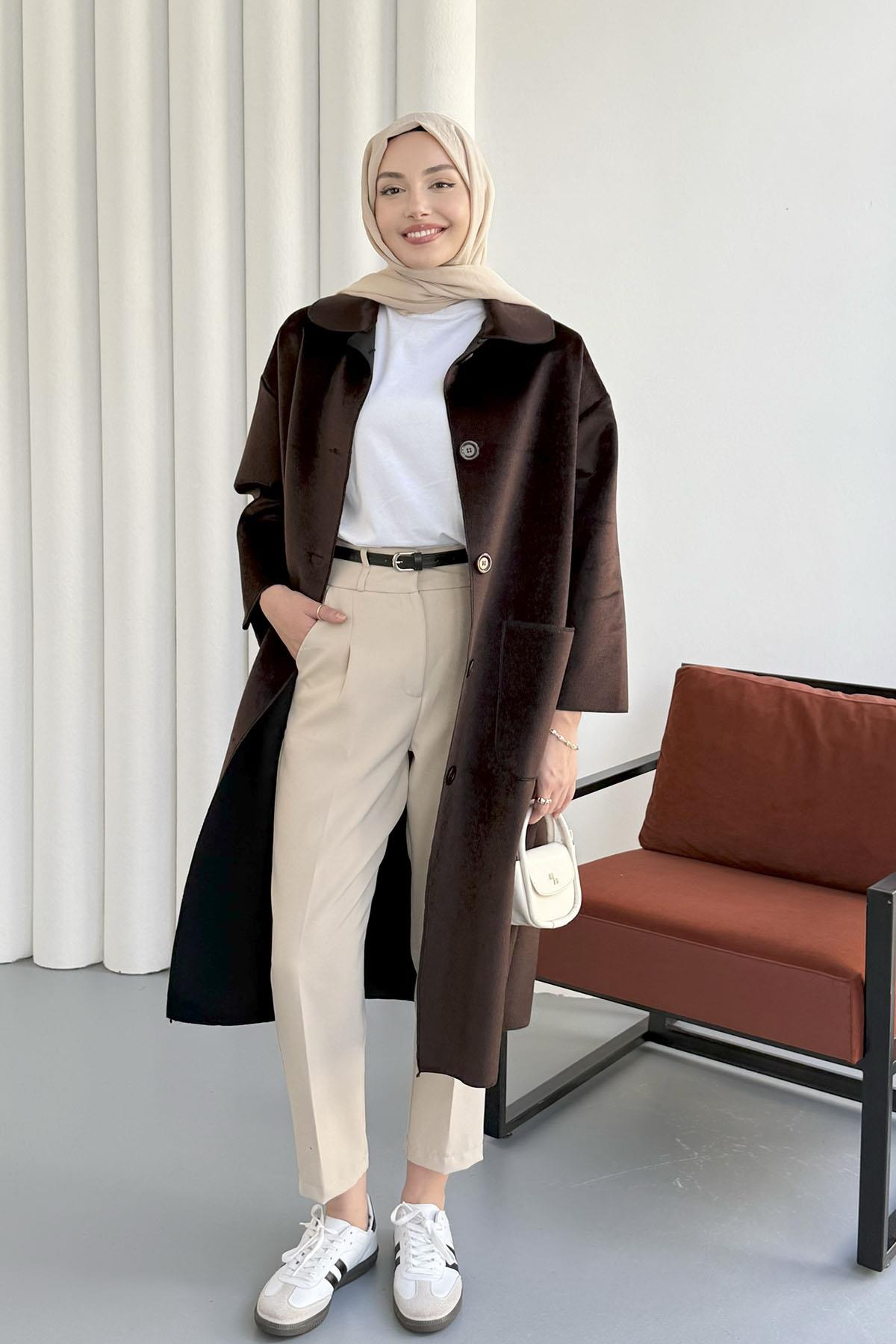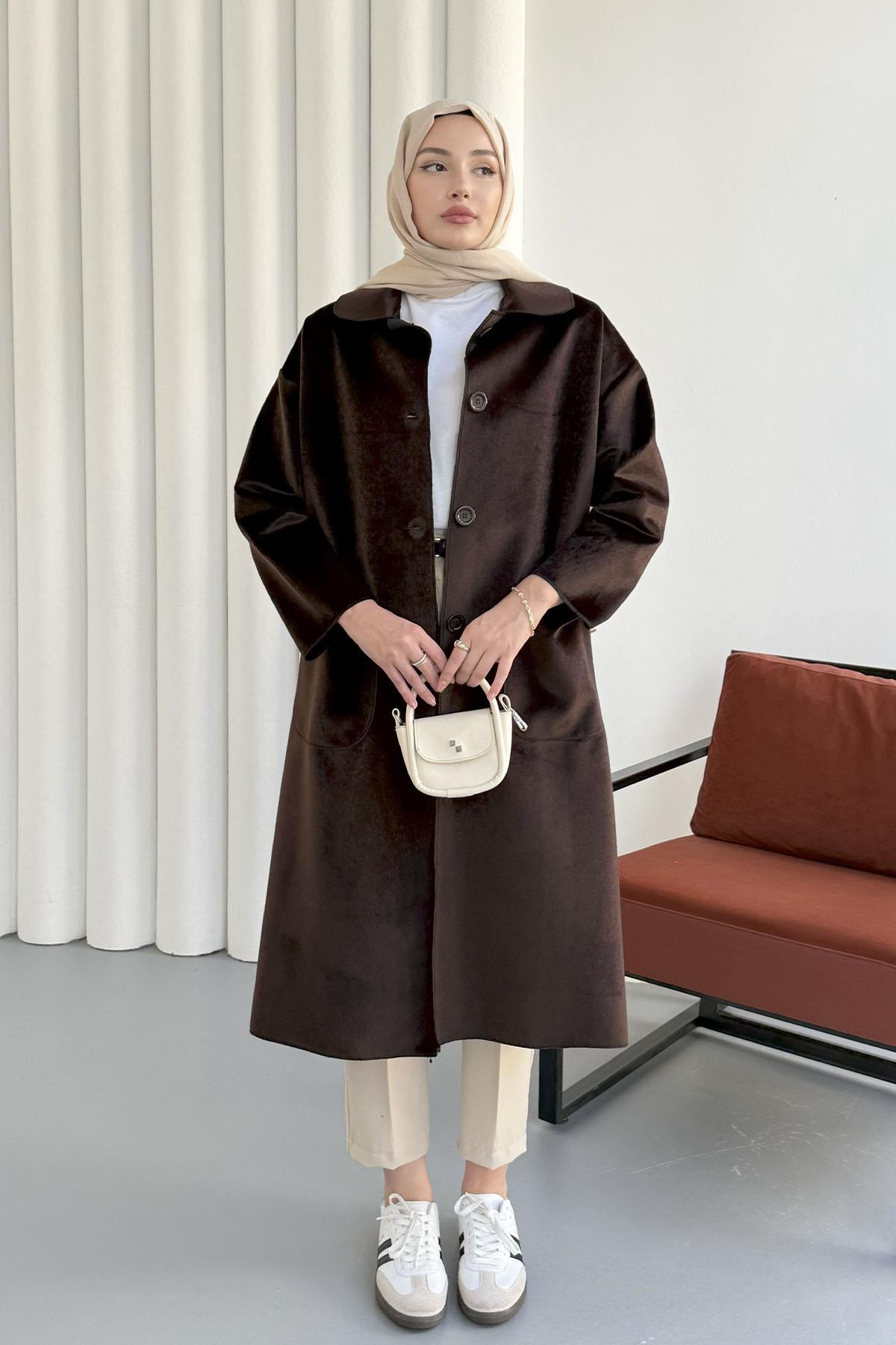 Torba Cepli Bebe Yaka Oversize Kaban-KAHVERENGİ (1063)