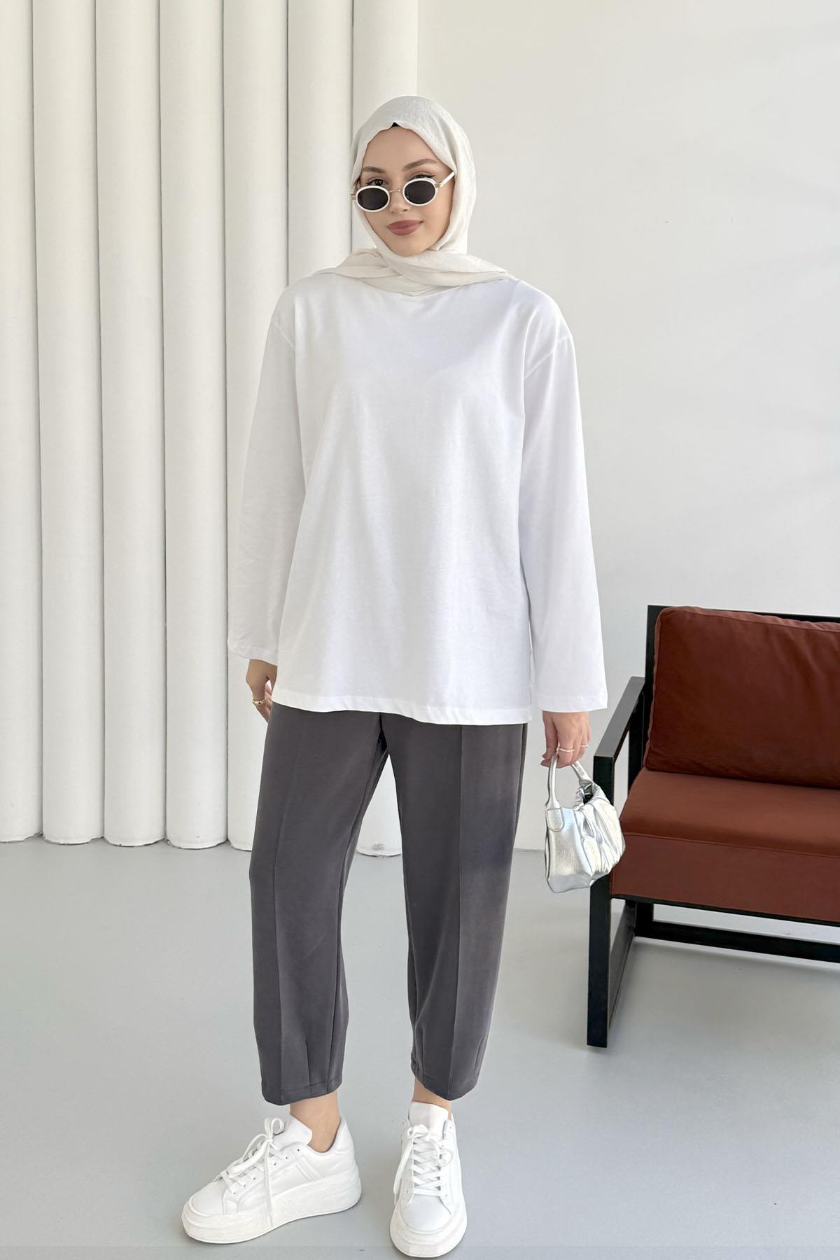 Uzun Kollu T-Shirt-BEYAZ (30058)