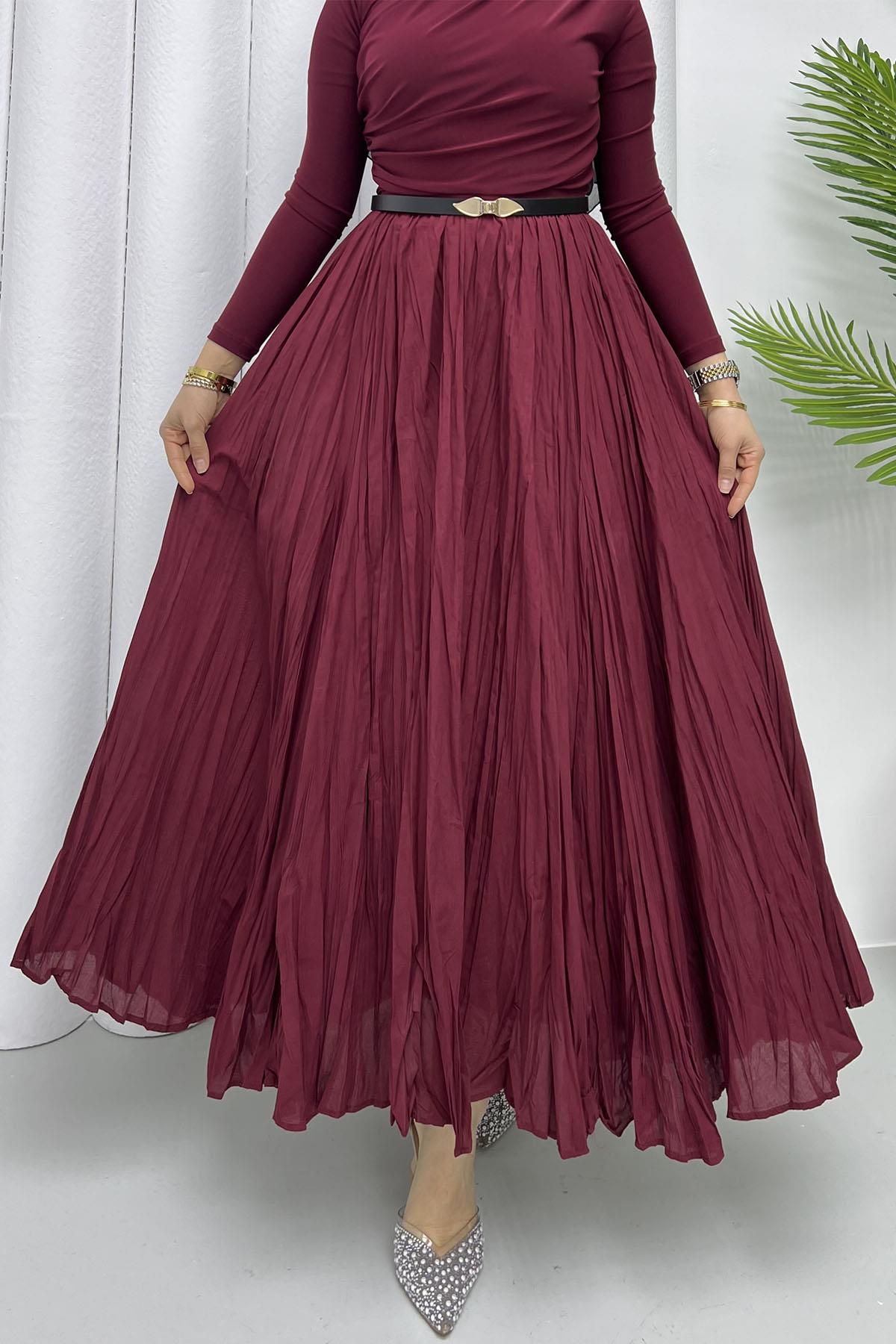 Vual Craşlı Pamuk Etek-BORDO (609)
